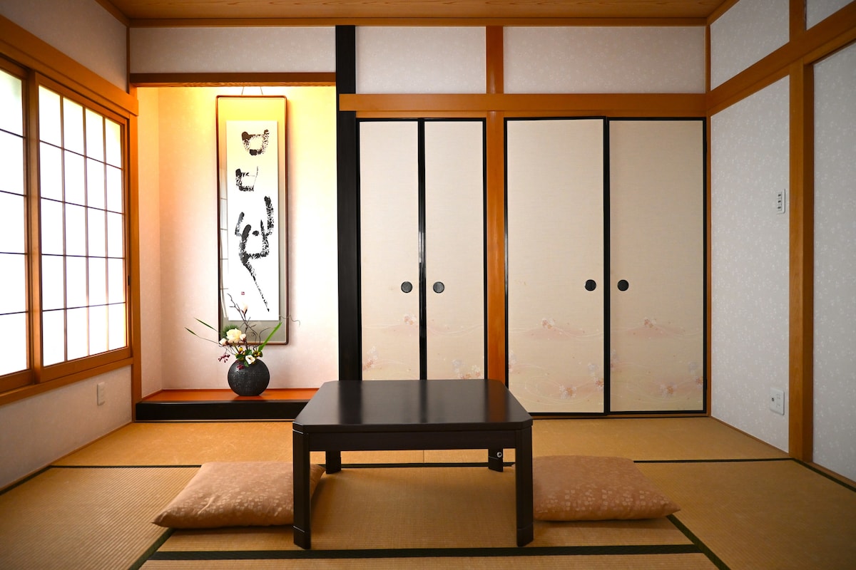 Ez a Kyo-machiya egy hagyományos kiotói építészeti stílus. Ez egy egymást követő stílusú sorház, egy maisonette típusú teraszos ház. Teljes házbérlet neked. Közel van az iskolákhoz és egyetemekhez, és egy biztonságos, nyugodt, helyi területen található, ahol sok család él gyerekekkel és diákokkal. Két hálószobával, zuhanyzóval és teljes konyhával rendelkezik. Emellett legfeljebb 2 csecsemő, akiknek nincs szükségük ágyra, ingyenesen szállhatnak meg a szálláshelyen. Kiotói városi szállásadót kell fizetni személyenként és éjszakánként.