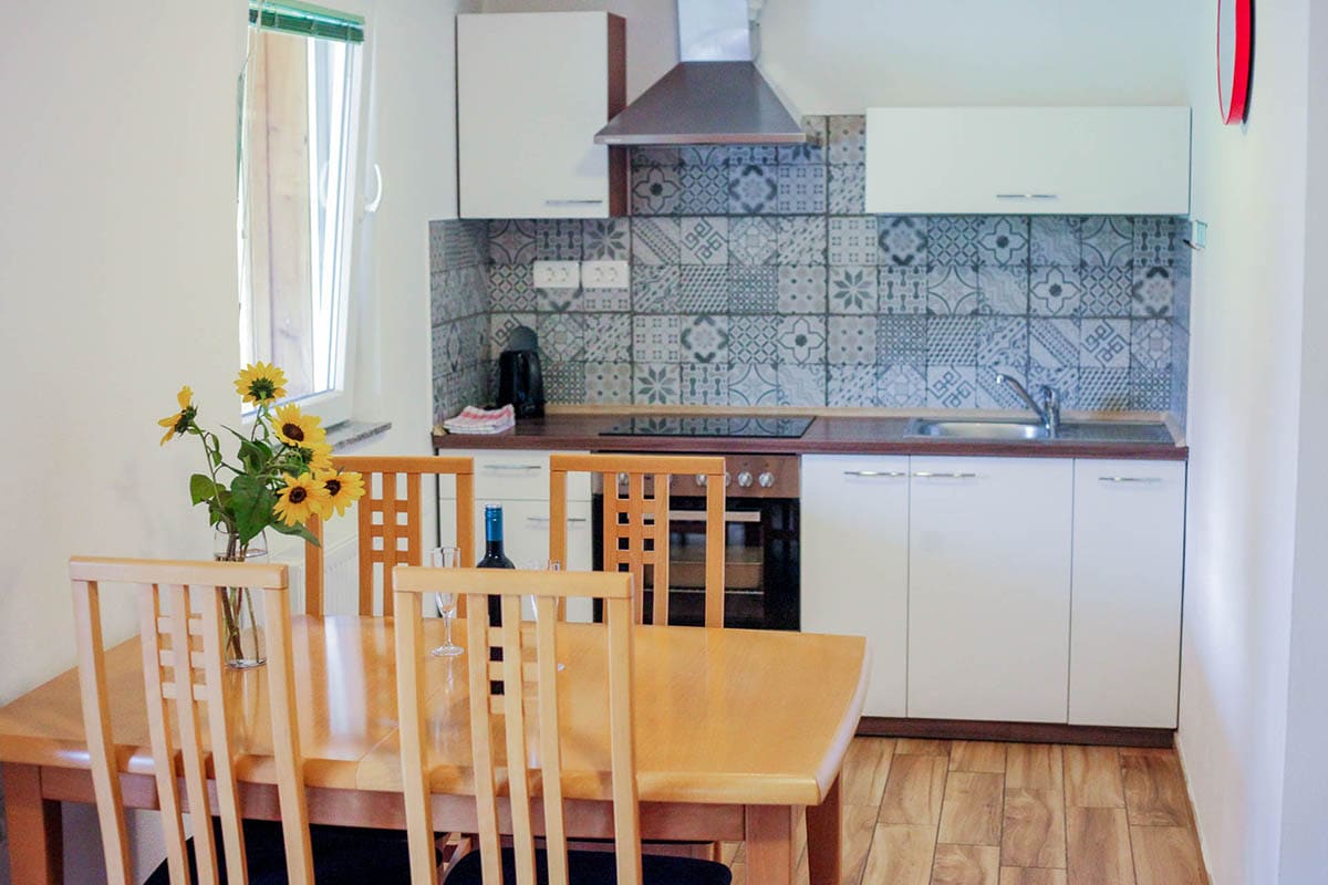 The house is on a quiet place where we have 4 apartments and 3 glamping little houses. In front is a lawn which you can use for recreation. Place is suitable for families and guests. It is a good starting point for hiking surrounding Julian Alpss, in the village is begining of cycling trail. Apartment is adapted for the disabled. Turist tax is 2€ per night per person and it is not included in the price. The apartments are not intended for parties. Night peace is from 10:00pm-7:00am.