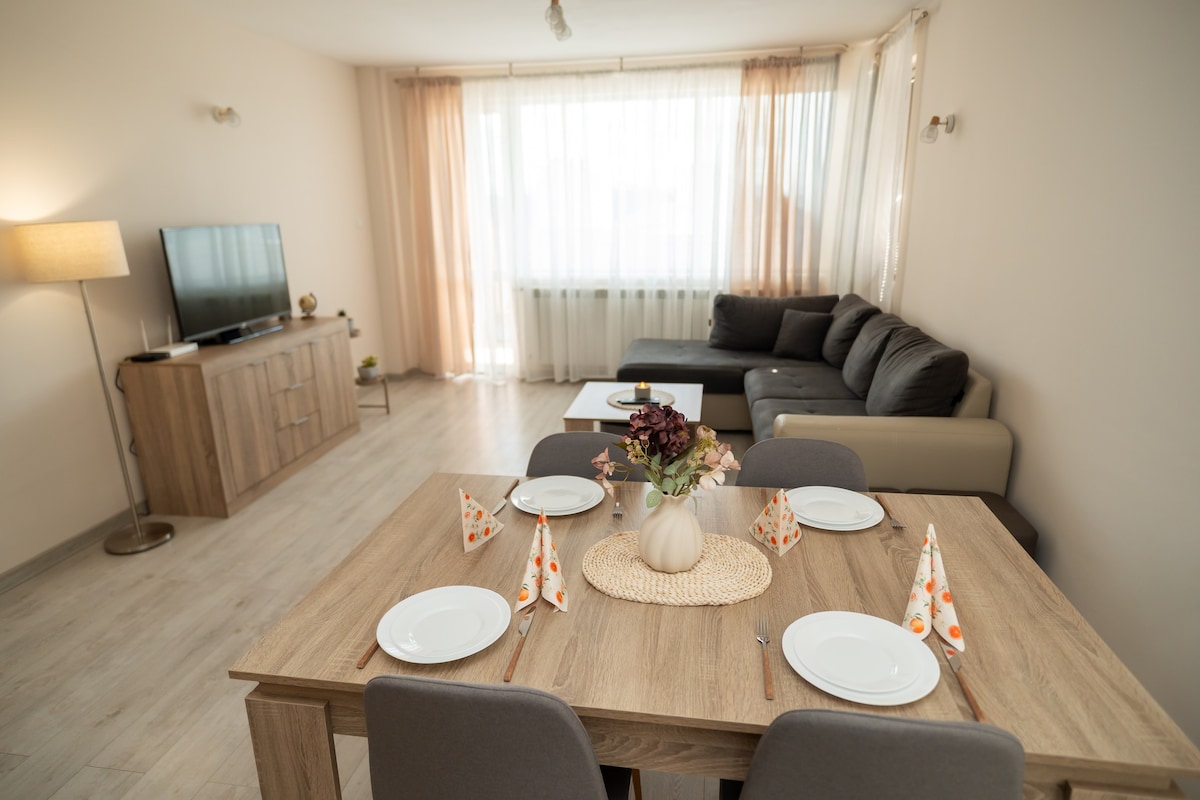 Üdvözöljük felújított lakásunkban! Napfényes és hangulatos, új fürdőszobával, stílusos belső térrel, kényelmes matraccal és mindennel, ami egy kényelmes tartózkodáshoz szükséges. A részletekre való odafigyeléssel tervezték, hogy nyugalmat és stílusos légkört biztosítson. Kényelmes helyen található. Ingyenes Wi-Fi, okos TV, kávé, tea és kis meglepetések várják az Ön kényelmét. A Sunny az otthonod távol az otthonodtól - egy hely, ahol a fény és a nyugalom találkozik 🍀 Érezd magad otthon, még akkor is, ha távol vagy tőle ❤️
