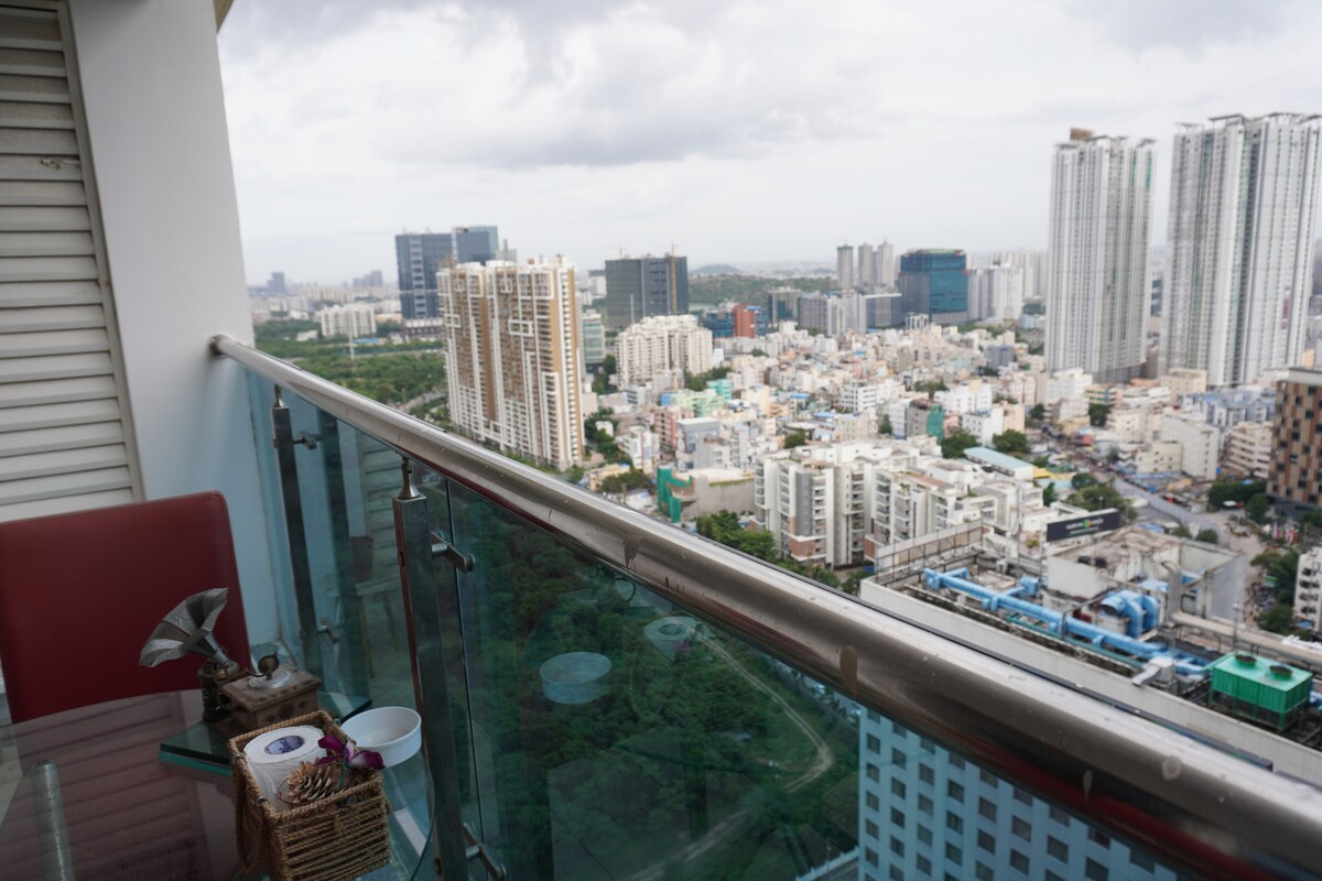 Üdvözöljük a nyugodt, magasban elterülő szálláshelyén, amely egy elegáns, magas épületben található, Haidarábad egyik legkeresettebb, elkerített közösségében. A nyüzsgő pénzügyi negyedben található stílusos lakás tökéletes keveréke a modern kényelemnek, a lélegzetelállító kilátásnak és a verhetetlen kényelemnek, amely ideális üzleti utazóknak, pároknak, digitális nomádoknak és családoknak egyaránt. Panorámakilátás, elegáns belső terek Ébredj az ágyad kényelméből, és gyönyörködj a kilátásban, amely Haidarábád látképére és a zöldellő környezetre nyílik.