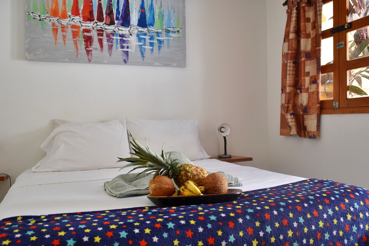 Ez a hangulatos szoba légkondicionálóval, saját fürdőszobával és tévével rendelkezik a Casa Dmer Taganga második emeletén, és hozzáféréssel rendelkezik egy közös konyhához, amelyben minden alapvető kellék megtalálható. Élvezd a teraszokat függőágyakkal, és pihenj a kis medencénkben, amely tökéletes a strandon eltöltött nap után. A reggeli nem tartozék. Mindössze két háztömbnyire vagyunk a nyilvános buszmegállótól, közel az éttermekhez és búvárközpontokhoz, a tenger pedig 40 méterre található. Ideális egy kényelmes és emlékezetes tartózkodáshoz Tagangában.