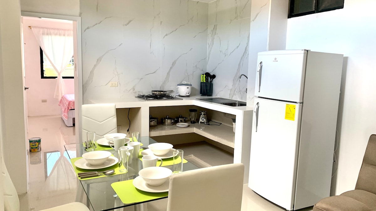 Enjoy a unique experience in San Cristóbal from this modern, spacious, and cozy apartment. Perfect for solo travelers, couples, or small families, it offers all the amenities you need and a prime location just steps from the Malecón, restaurants, bakeries, pharmacies, and tour agencies.
