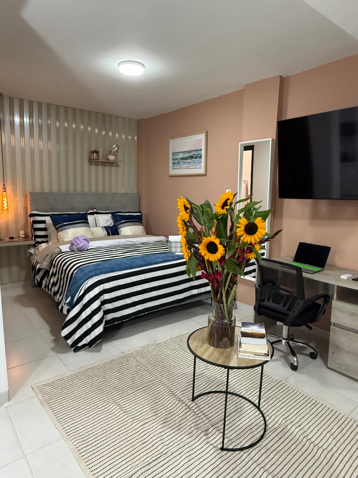 Érezd magad otthon, miközben meglátogatod Cali gyönyörű városát. Ez egy luxuslakosztály mindennel, amire szükséged lehet a kellemes időtöltéshez, egy békés, előkelő környéken található, nagyon központi helyen, sétatávolságra a Parque del Perrótól. Nagy figyelmet fordítottunk minden részletre. Itt találsz egy teljes konyhát, 1 teljes fürdőszobát, kis irodaterületet és meleg vizet a pihentető zuhanyzáshoz. Intelligens TV a szórakozáshoz, a WIFIHEZ és egyebekhez. Nagyon szeretnénk, ha otthon éreznéd magad!