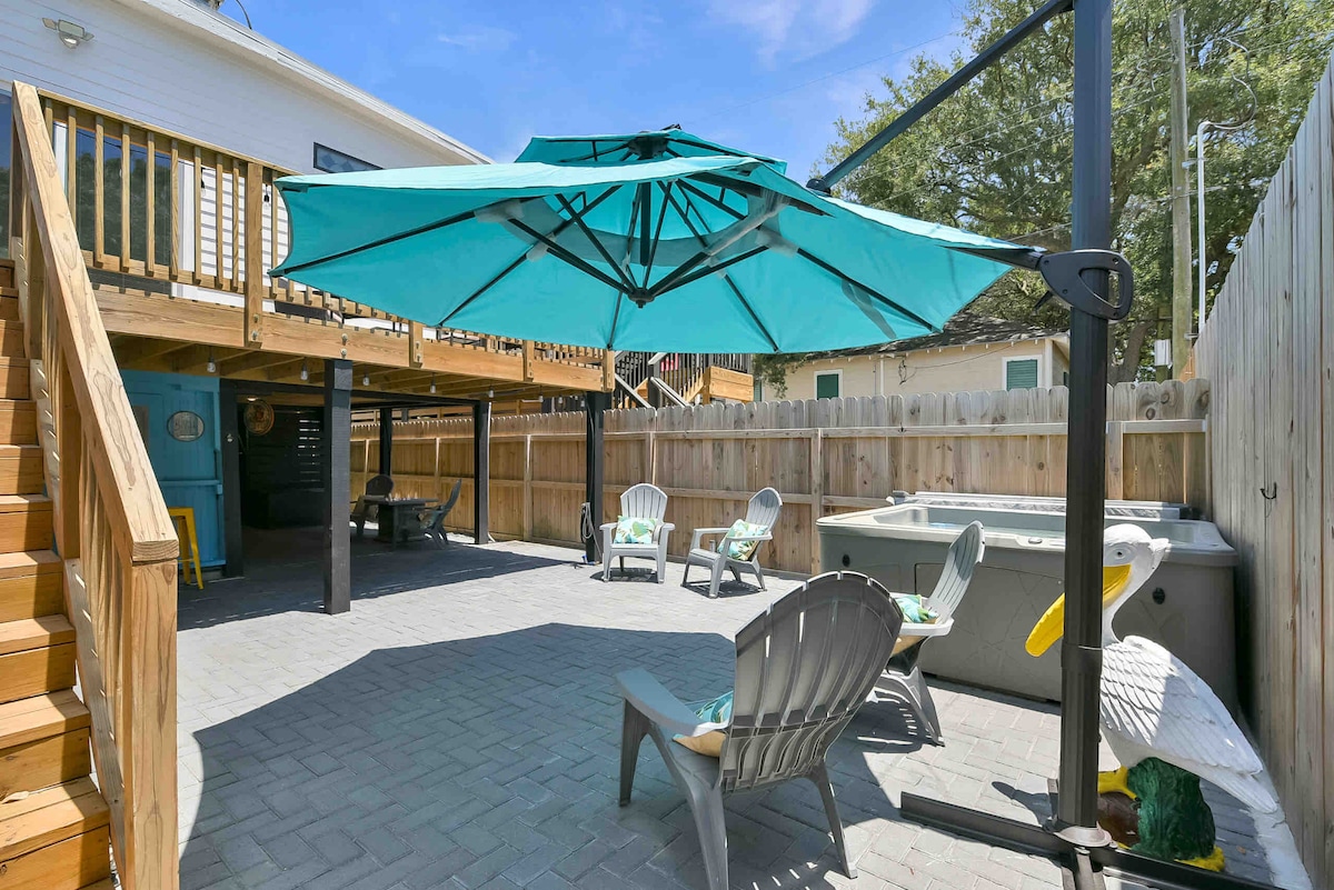 Hasta La Vista! Dőlj hátra, és pihenj ebben a nyugodt, stílusos tengerparti otthonban. Ülj ki a teraszra a kávéddal, és hallgasd a partmadarak dalait és az óceán nyugtatót. Grillezz néhány jó időt a földszinten. Igyál egy finom koktélt a teraszon, miközben kukoricakölyukkal játszol. Készíts édes s'more-t a tűzrakóhelyen. Tegyél egy gyors, 3-5 perces sétát a partig anélkül, hogy el kellene kerülnöd a forgalmat, vagy át kellene kelned egy nagyobb utcán. Élvezd a Galveston-sziget minden történelmét és báját!