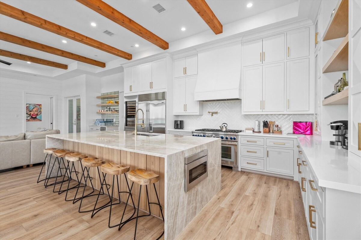 Experience beachside bliss at this chic villa just STEPS to the beach! Recently remodeled, this 2nd row retreat near Jamaica Beach boasts 2 patios, pristine interiors, 3 beds, 2 baths, and awe-inspiring views. The expansive home offers cozy beds, an outdoor shower, and even a grocery store & restaurant within walking distance. Home comes with all the kitchen and beach gear you will need! Enjoy a leisurely walk along the quiet beach or take a quick trip into Galveston for city exploration.