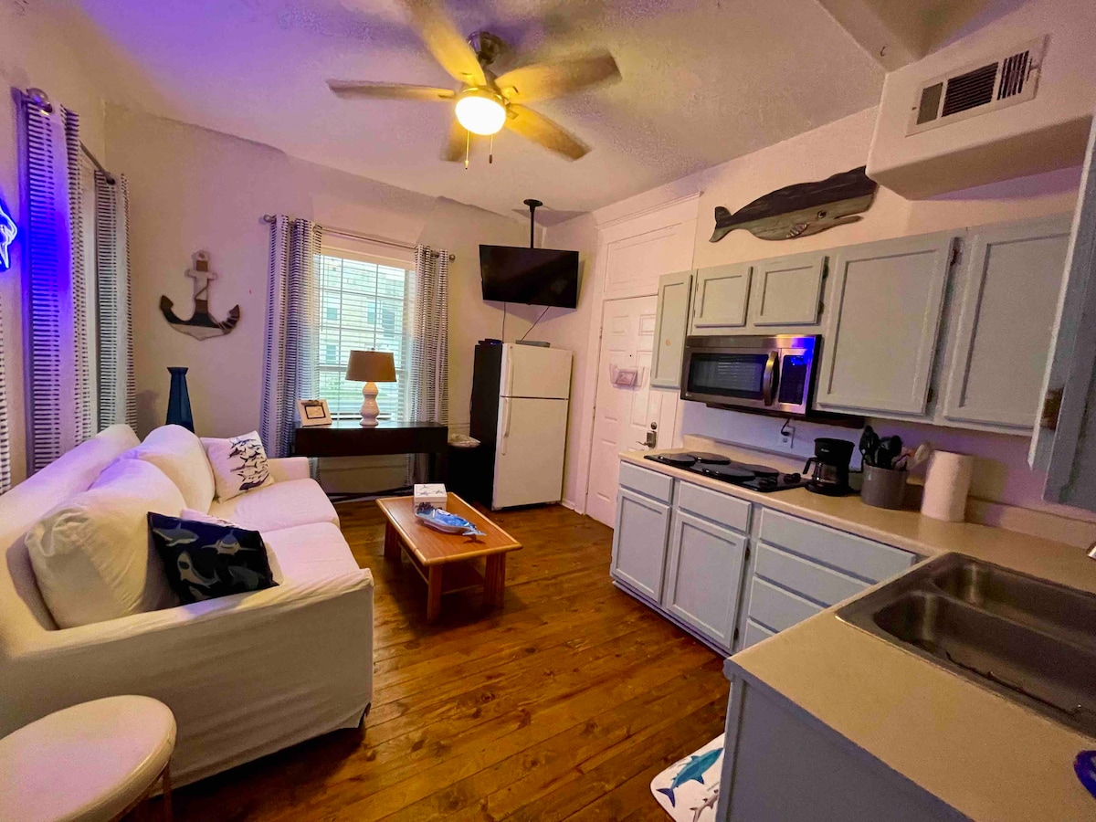Ez a lakás nagyon kényelmes és tökéletes egy pihentető kiruccanáshoz Galvestonba 1.5 Blk to BEACH @ 23rd/Seawall and also near to The Strand/Cruise terminal.Safe neighborhood Frissítve: 1/1 TELJES lakás az 1. emeleten Privát, kerítéssel körülvett terasz grillezővel. KISÁLLATBARÁT. Nincs háziállatdíj Gyors WI-FI/központi LEVEGŐ/FŰTÉS. 65" Smart TV Ingyenes utcai parkolás Teljesen felszerelt konyha a szakácsoknak, bár számos étterembe és bárba elsétálhatsz EGYSZERŰ távozás, ahol mindenről gondoskodunk - nincs házimunka.