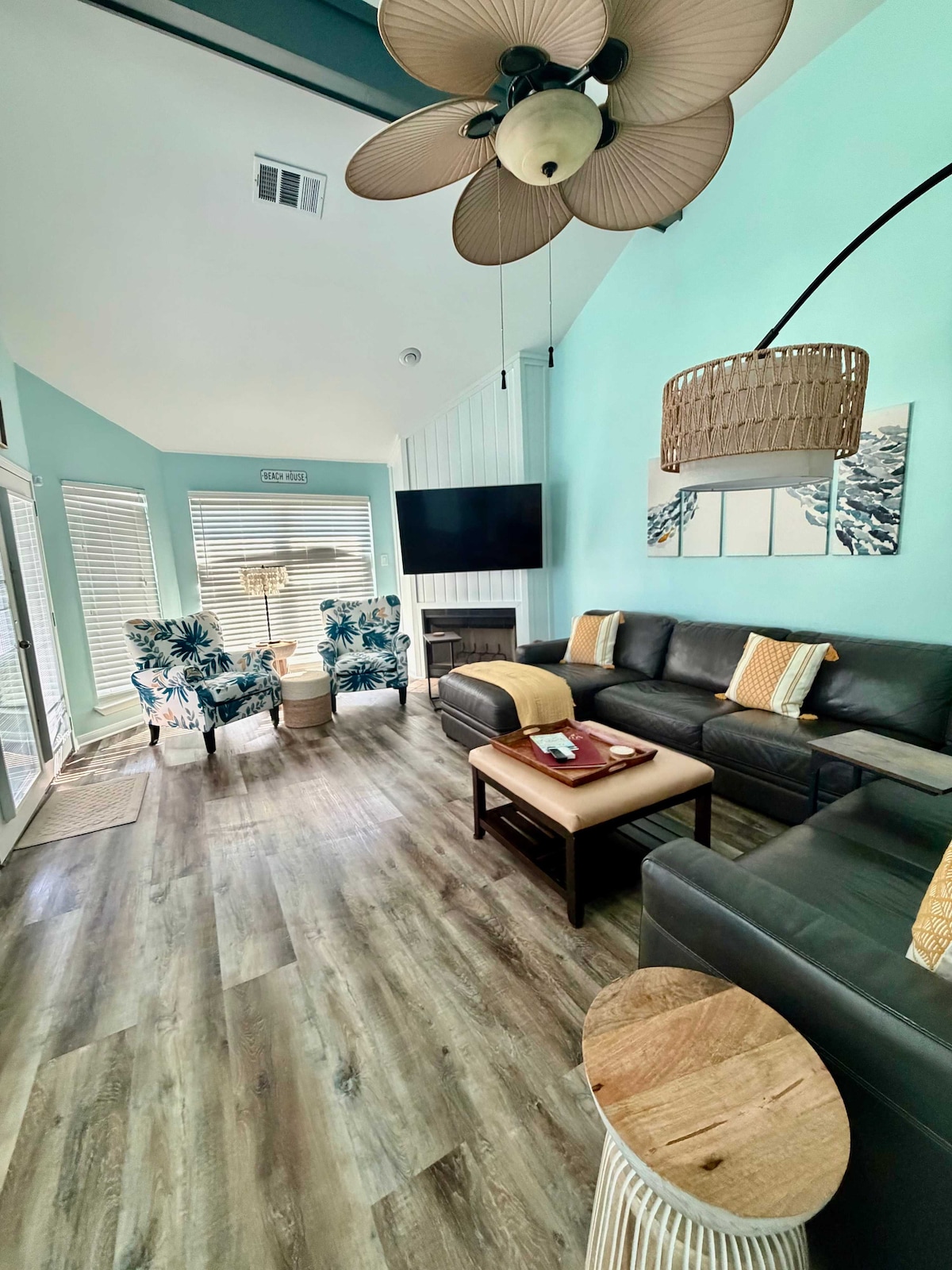 Step into a piece of Galveston history at this beautifully restored 1895 home, where timeless charm meets modern comfort. With original hardwood floors, soaring ceilings, and a spacious, open layout, this historic gem blends character and convenience for families, groups, and beach lovers alike! Relax with the whole crew with three elegant bedrooms with king-sized beds, plus a cozy bunk room perfect for kids or extra guests.The home offers three full bathrooms and plenty of room to spread out.