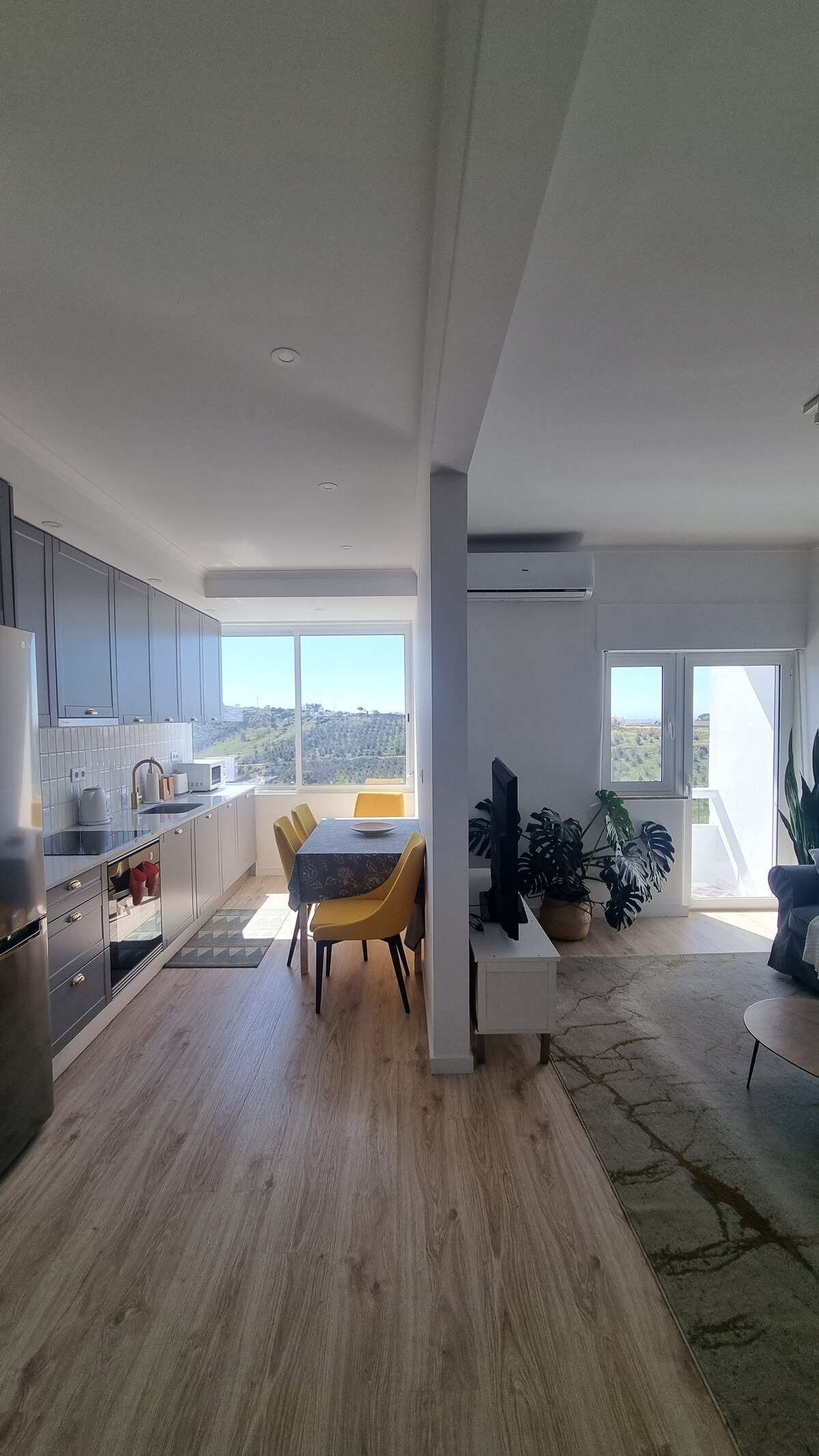 Renovated and fully equipped 1-bedroom apartment in a quiet residential area of Setúbal. We have AC in the living room/kitchen (unique space) and in the bedroom. The windows (double glazed) are new, allowing for heat/cold and noise insulation. The kitchen is new: refurbished in December 2023. Close to Supermarket, McDonalds, pastry shops and restaurants. It's easy, safe and free to park on the street. Fast Vodafone internet, ideal for home office.