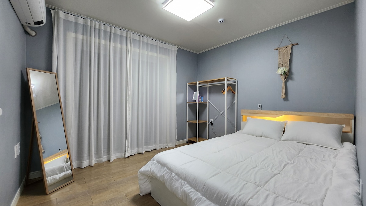 평온하고 쾌적한 숙소에서 연인 친구와 함께 핌프로젝터 영화를보며 꿀 같은 휴식을 가지세요(넷플릭스 디즈니 유튜브) 💘이벤트1》3박이상 할인혜택 연박 문의주시면 이벤트가로 적용하여 변경 🍭이벤트2》 유아혜택(낙상위험없는 소파베드에 폭신하게 이불 유아전용베개 펴드립니다)메세지주세요. 👍객실 피톤치드 살균 매일 진행 합니다