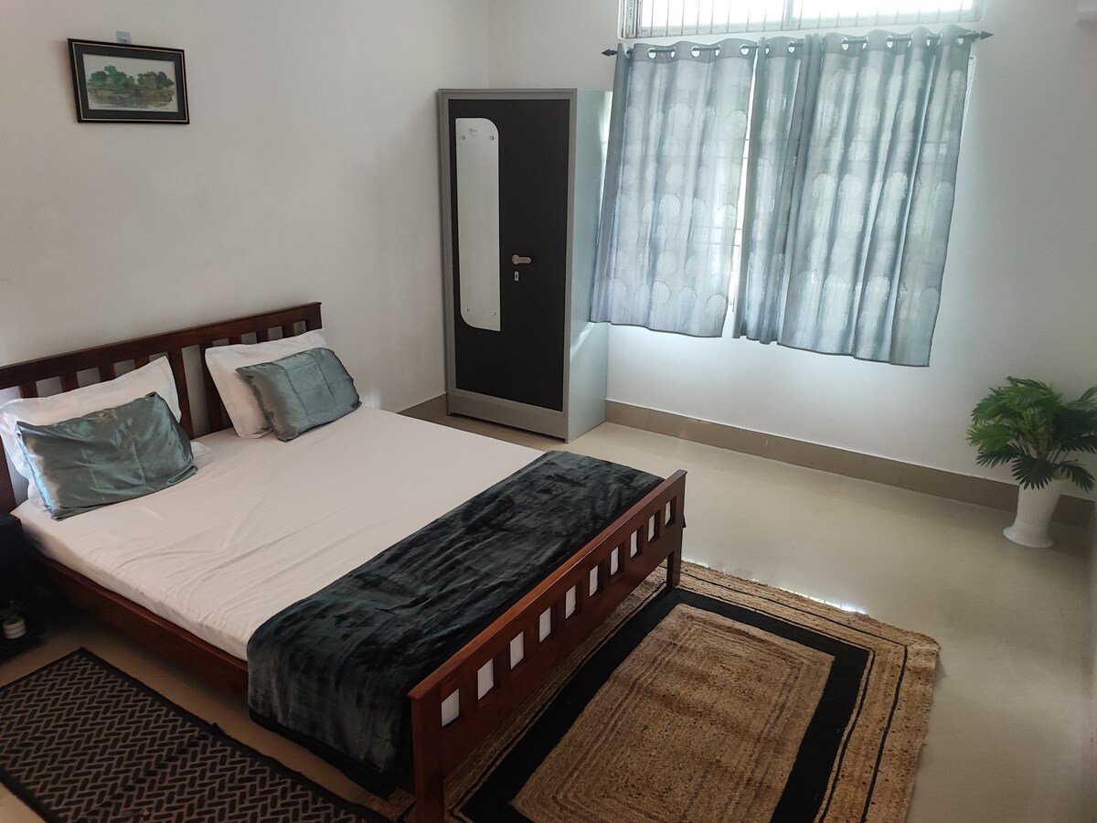Pihenj ebben a békés, 2 szobás Assam típusú házban, amely a város szélén található, nyugodt és nyugodt tartózkodást kínál. Hozzáférhetsz egy nappalit és egy saját fürdőszobás hálószobát. Vedd figyelembe, hogy nincs konyha. A csendes környéken található bulik és helyben lakó párok nem engedélyezettek. Elhelyezkedés - Club Road a Gymkhana Club közelében