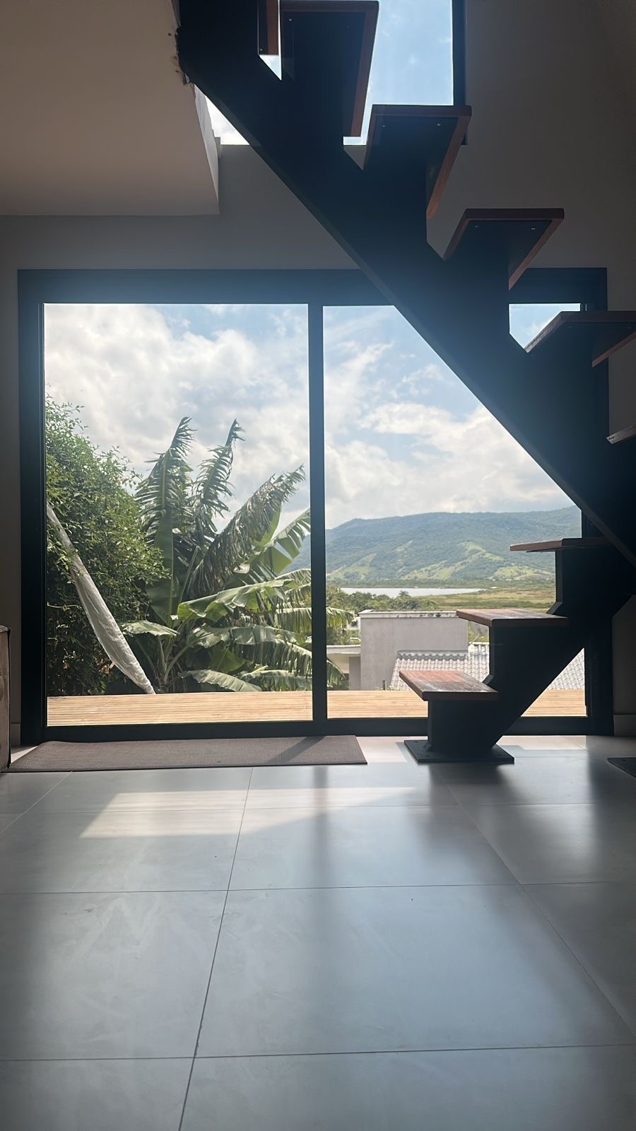 O chalé fica no alto do morro com vista mar entre as árvores. A casa tem Ar Condicionado, cozinha completa, sofá, rede, banheiro privativo, quarto com colchão Queen no mezanino, vista pro mar e morros, além do espaço comum da pousada com churrasqueira, forno de pizza, sala com lareira, sofá, mesa e varanda com uma vista mar incrível. Localização (Praia do Siriú) - 1km do mar da Praia do Siriú - 7km do centro de Garopaba