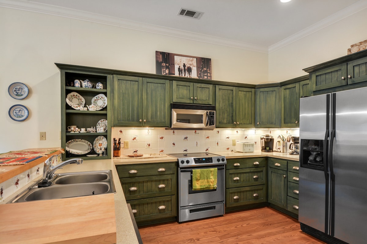 UPDATED LUXURY, FASTIDIOUS CLEANLINESS in historic OldTown Bluffton’s coziest carriage house. OldTown’s vibe is just plain fun. Stoll 2 blocks to super restaurants, night life, art galleries, boutiques, antebellum homes & lush waterfront parks on the idyllic May River. New in 2018 w/ quartz counters, private bedroom w/ plush king-size bed, upscale bath w/ soaking tub, bright living/dining room, full kitchen & romantic rocking-chair porch up in moss-draped oaks. Read our Reviews. Guests love it!
