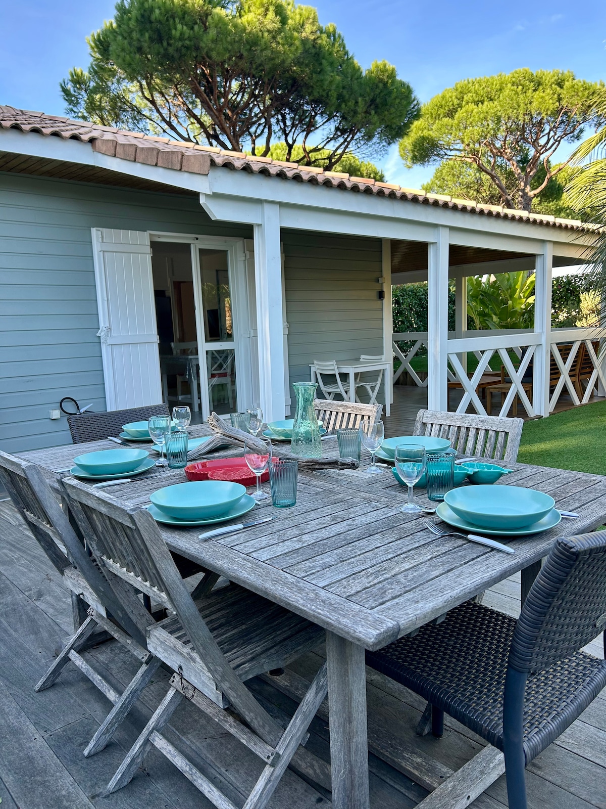 La Conciergerie Jeannette vous propose un chalet californien rénové pour 6 personnes, niché au cœur d’un parc sous les pins parasols et à proximité de Saint-Tropez. Décor bord de mer, jardin, varangue et terrasse pour profiter du soleil. Installez-vous, vous êtes en vacances ! Services premium : accueil personnalisé, location de bateau, transferts depuis la gare ou l’aéroport de Nice.