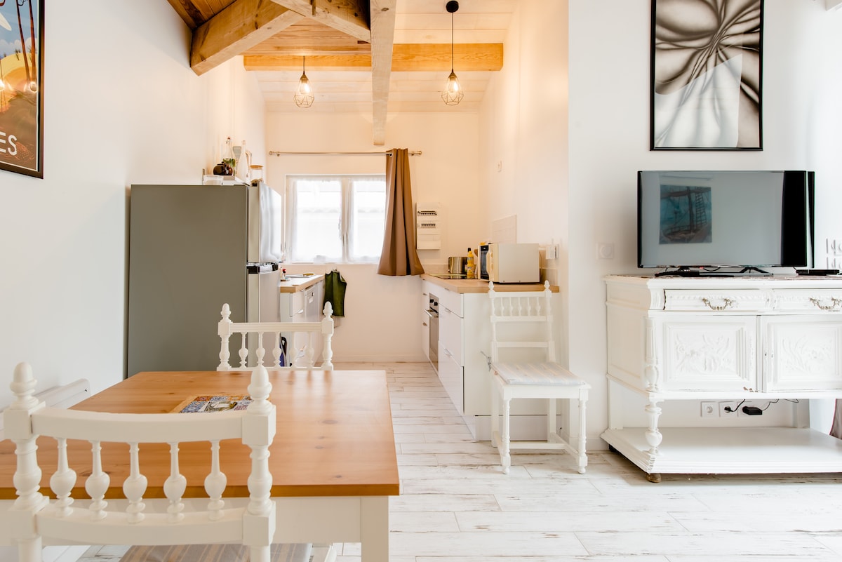Üdvözlünk a gyönyörű, újonnan felújított Landes pajtánkban, amely a fenséges Landes partvidék szélén található. A természet szerelmeseinek, családoknak vagy baráti társaságoknak ideális pajtánk a rusztikus báj és a modern kényelem tökéletes keverékét kínálja. Közel a békés Biscarrosse-tóhoz, amely tökéletes úszáshoz, vízi sportokhoz és kikapcsolódáshoz. Mimizan és Biscarrosse homokos strandjai közelében. A Veloysée kerékpárútjai közelében.