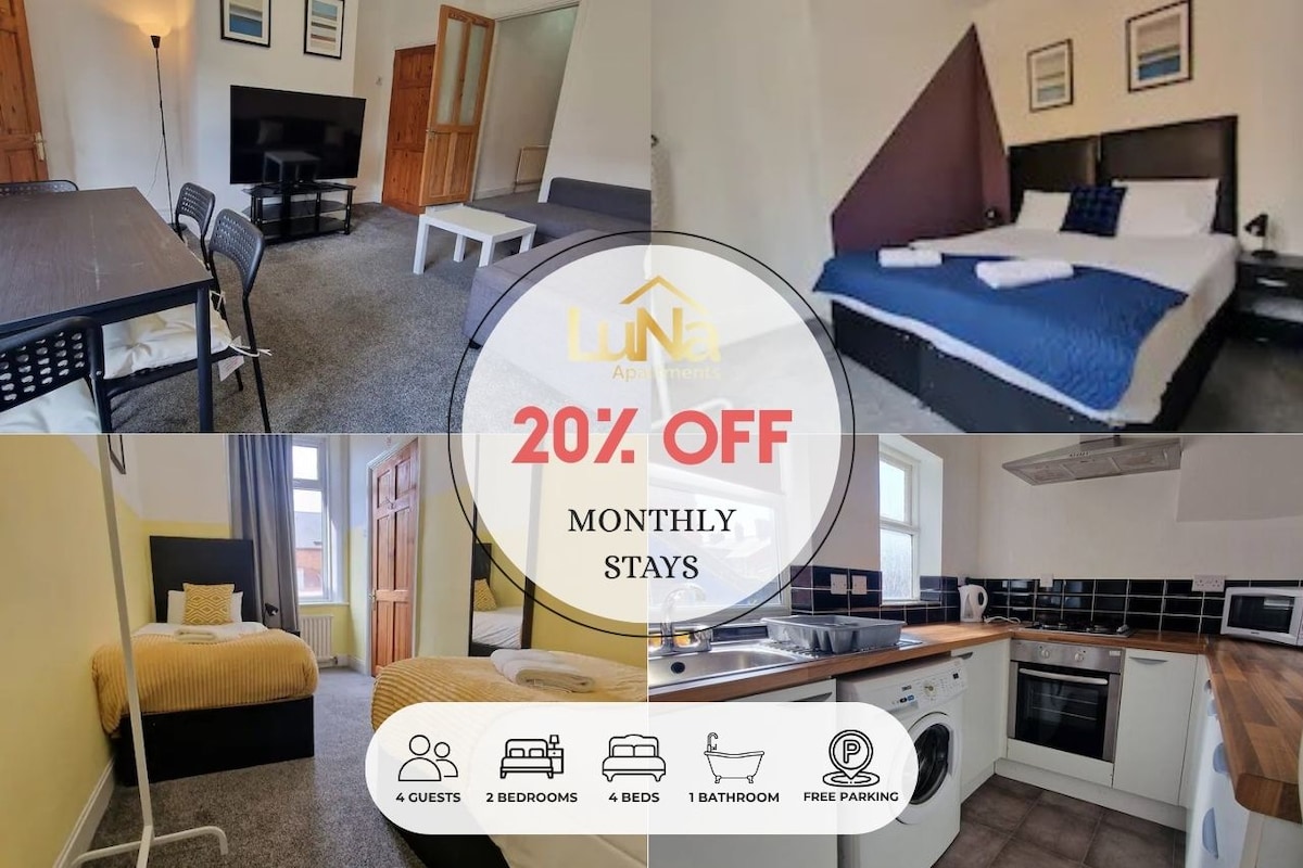 2 ágyas lakás, Newcastle központja közelében, ingyenes parkolás