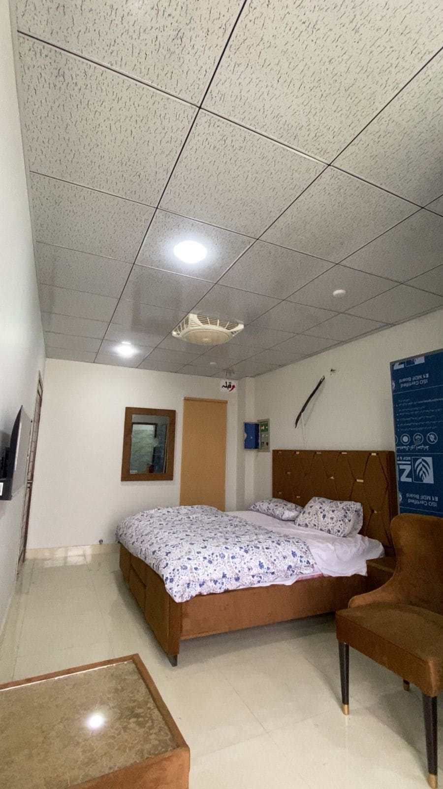 its 5star Lush green area on lower canal road constructed by British architect. Fresh sweet water to shower. and its very close to all attractions like kohinoor , D.ground and Lyalpur Galleria. Gated security 24 hrs. its on Ground floor with all living facilities Air conditioned room hot and cool water 2 Rooms with attach bath 1 living with cozy sofas Fully operational kitchen wifi Laundry area with automatic washing machine Food delivery facilities nearby Unmarried couples NOT allowed 🚫