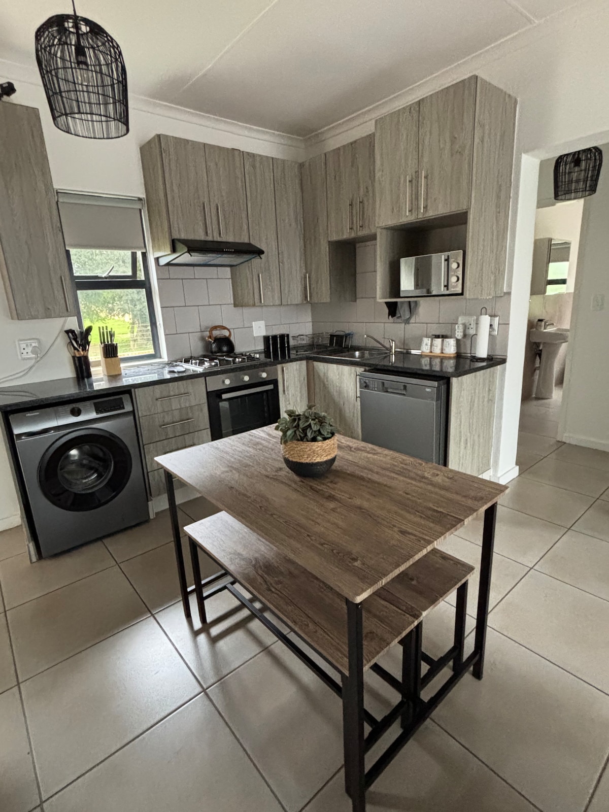 15 percre az OR Tambótól. Ez az elegáns, fekete-fehér hely egy biztonságos, zárt komplexumban a kényelem tökéletes keverékét kínálja. Élvezd a külön parkolóhelyet, a lock-and-go életstílust és a távoli hozzáférést. Luxus queen méretű ággyal és franciaággyal, irodaterülettel és nagy sebességű Wi-Fi-vel ideális a munkához vagy a kikapcsolódáshoz. A teljesen felszerelt konyhában gázfőzőlap és mosogatógép található. Pihenj a hangulatos erkélyen, és élvezd a prémium minőségű bútorokat, ágyneműt és étkezési kellékeket.