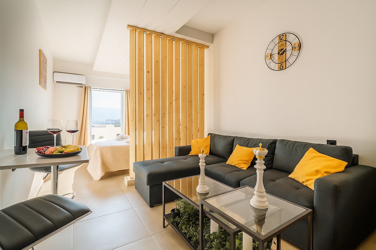 Ismerd meg Kréta legszebb oldalát! Stílusos, tágas terasszal és lenyűgöző kilátással rendelkező lakás mindössze 80 méterre a parttól. Modern, teljesen felszerelt, csendes – tökéletes családoknak vagy egyedül utazóknak. Pihenj, főzz, élvezd a napot vagy nézd kedvenc műsoraidat – minden megvan egy felejthetetlen nyaraláshoz.
