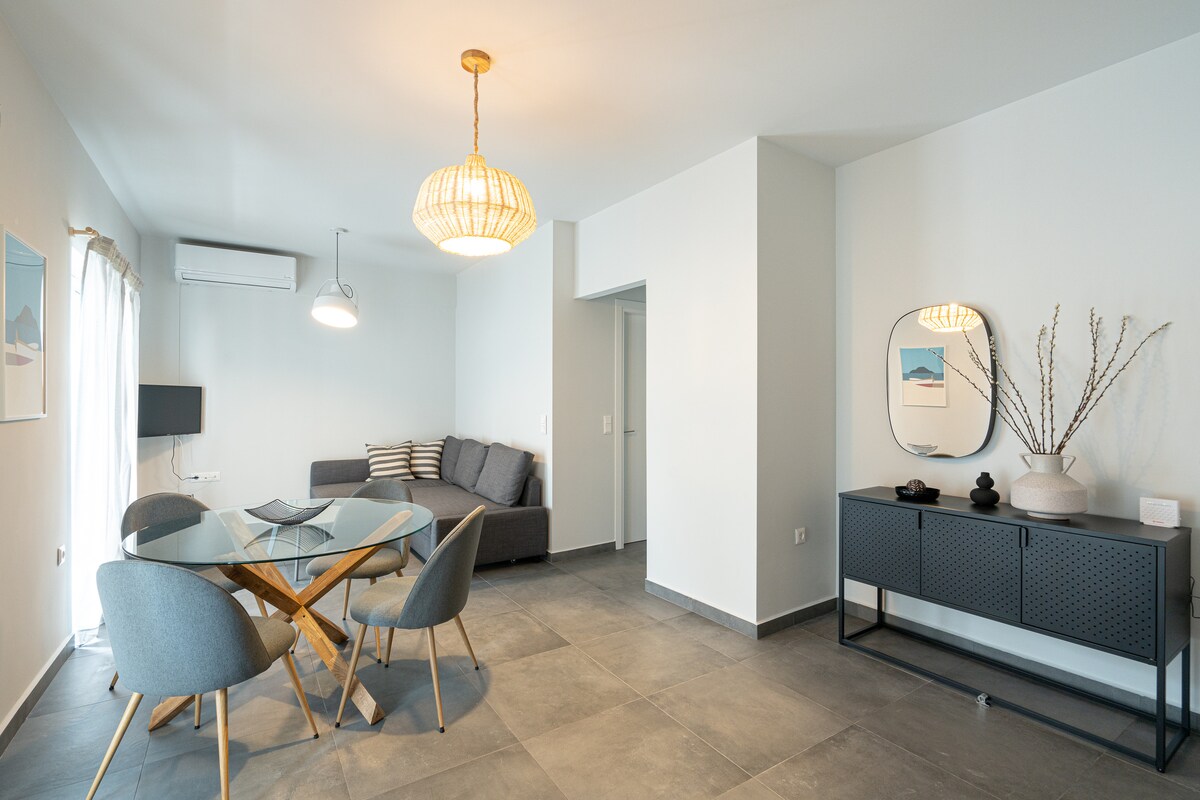 Ez a központi, modern, 2 hálószobás lakás mindössze 50 méterre található a tengertől és a Xylokastro sétánytól, amely páratlan magánéletet kínál a környék egyetlen épületeként. Tökéletes azoknak a családoknak és barátoknak, akik olyan kényelmi szolgáltatások közelségét keresik, mint az éttermek, üzletek, szupermarketek és a strand, miközben privát és nyugodt kikapcsolódásra vágynak. A 2022 májusában felújított lakás a kortárs utazó által igényelt összes kényelmet biztosítja.