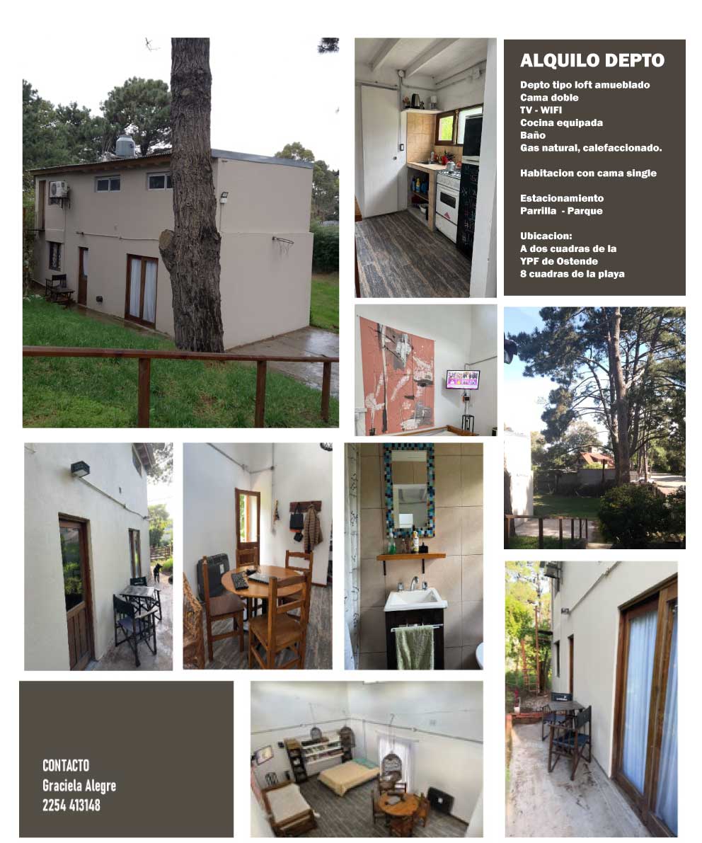 El departamento se encuentra ubicado en una zona muy tranquila, a medio camino entre Pinamar y Cariló. La playa está a 250 metros (dos cuadras) de distancia; hay transporte urbano a doscientos metros y supermercado a 150 metros. Tiene comodidades para dos personas y un sofá cama que permite extender las plazas a 4 personas como máximo. IMPORTANTE: TRAER SABANAS Y TOALLAS. Por la noche hay muy buena iluminación exterior. No aceptamos mascotas.
