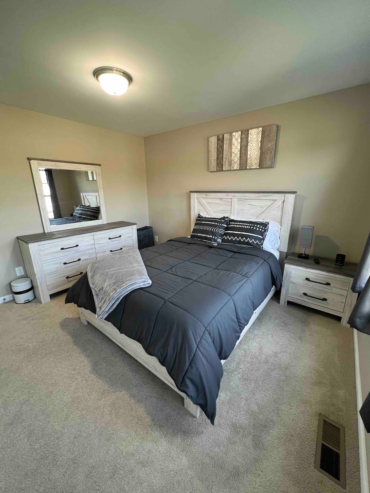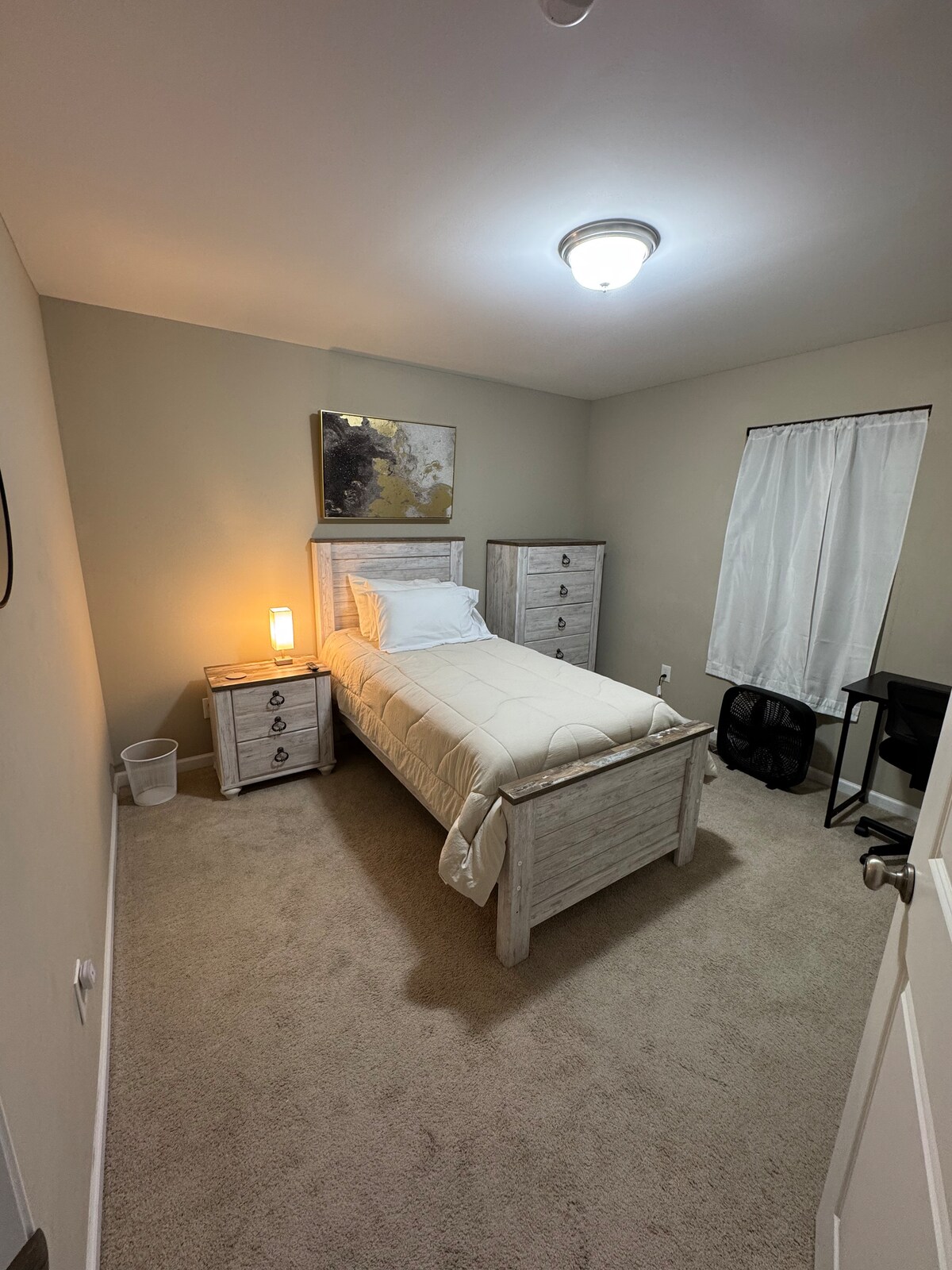 **For visiting medical students/residents** Room 1 of 2 for rent in a 3BR/3BA house. Each bedroom is furnished with a dresser and bed with fresh linens along with closet space. The upstairs bathroom would be shared by renters. Full access to communal living areas including basement with weight rack, fully equipped kitchen, den, and backyard with fence. 1 dog lives within the house. Located within very friendly and safe neighborhood, approximately 7-8 minutes away from Ascension Genesys Hospital.
