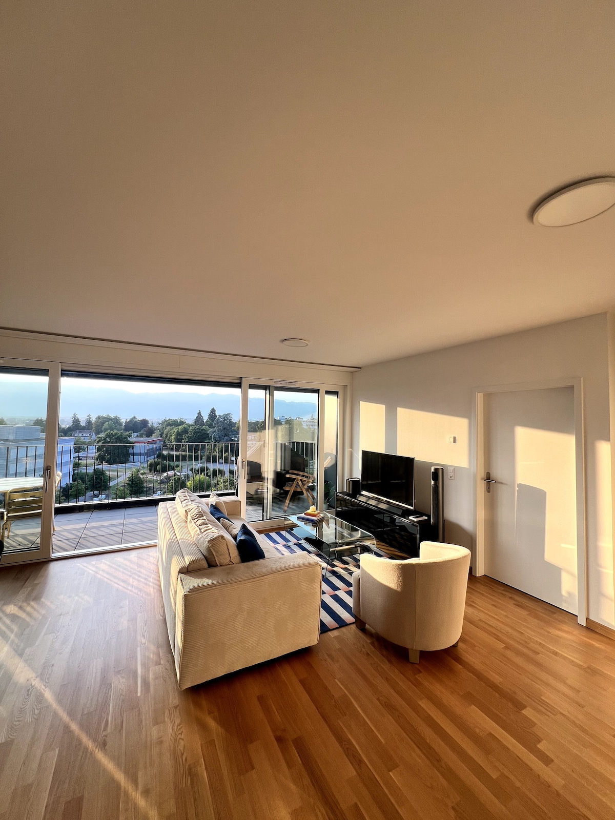 Découvrez cet appartement moderne à Genève, proche des parcs, organisations internationales, et de l'aéroport. Profitez d'une grande terrasse privée avec une vue imprenable sur les montagnes du Jura. Idéal pour couples ou travailleurs cherchant tranquillité et confort. Wi-Fi fibre optique, cafetière à grains et barbecue sur la terrasse inclus pour des moments inoubliables. Un espace élégant alliant sérénité et luxe, parfait pour un séjour mémorable.