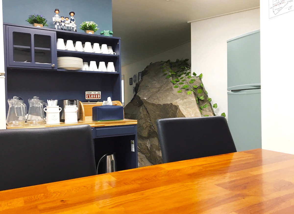 # Jian: Forest (Premium) # A Deokpo strandra néző dombra épült hely, ahol 3 emeletből 2 használható. Az első emeleten egy Standard szoba, hogy lehet használni a többi vendég, és teljesen elkülönül a lakás, mint egy Standard szoba. (Közös tér X) A második emeleten, van egy nagy nappali egy lemezjátszó, ahol élvezheti a zenét, egy Marshall hangszóró, stb, és egy szép konyha minden kelléket. A harmadik emeleti hálószobában sugárvetítő található, szép fényekkel és nagy képernyővel, mintha moziba jönnél.(Netflix, Youtube Premium) Ez egy nagyon csendes környéken, és ez található egy faluban, ahol sok külföldi él, mert csendes és privát. Ha egy csendes helyen szeretne pihenni, miközben az óceánra néz, kérjük, használja a Jian erdőt:) Felejtsd el az aggodalmaidat és aggodalmaidat azzal, hogy egy tágas és nyugodt térben szállsz meg.