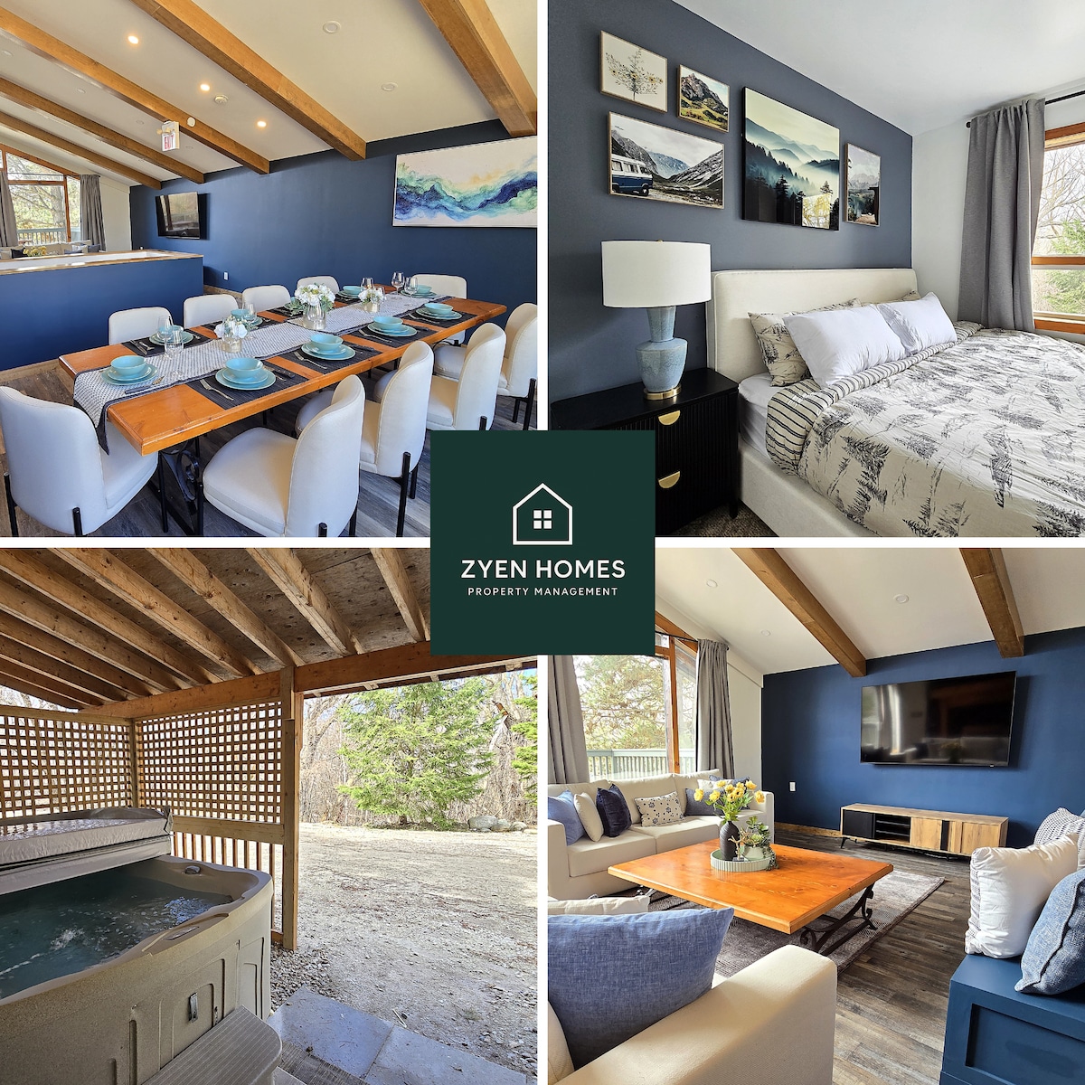 Képzelj el egy szuper nagy, otthonos nyaralót a Blue Mountain Ski Resort szívében, amely a luxus és a kényelem tökéletes keverékét kínálja. Négy hálószoba két king méretű ággyal. Ez a tágas elvonulási hely több szinttel büszkélkedhet, hogy a lehető legnagyobb kikapcsolódást és nyugalmat biztosítsa. Az otthon 4,5 tágas fürdőszobával rendelkezik. Szauna- és szórakoztató alagsorunk készen áll a vendégek szórakoztatására. Sétálj el a Village-be, vagy szállj fel egy ingyenes transzferbuszra. Sétáljon a szabadtéri fűtött medencéhez (szezonális június-szeptember) 1 perc alatt.
