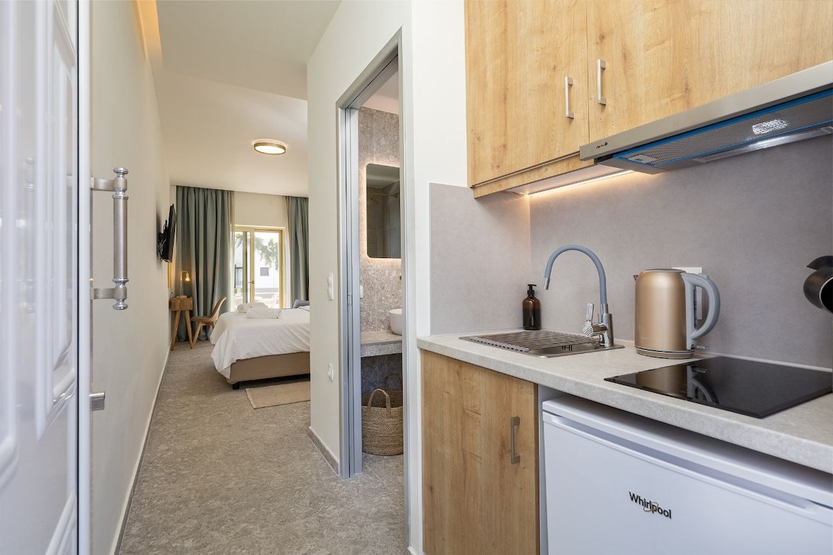 Escape to our stylish apartment in the heart of Georgioupolis for your perfect Greek holiday. Your Retreat: · Enjoy restful nights on an orthopaedic double bed. · Savour morning coffee on your private balcony with sea views. · Prepare meals in your compact, fully-equipped kitchenette. Free public parking nearby. Perfect for couples & travellers seeking comfort and authentic Greek charm. Amenities: Sea View• Air Conditioning • Free Wi-Fi • Smart TV • Kitchenette • 2-min Beach Walk