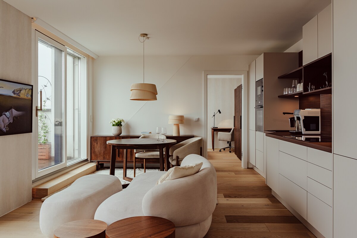 Garantált első osztályú élmény a gyönyörű bécsi látképre néző kilátással. A 24. emeleten található luxus 55 m² -es, további 10 m² -es erkéllyel rendelkező luxuslakást úgy tervezték, hogy felejthetetlenné tegye az élményt. A szálláshelyen olyan kiemelkedő előnyökkel jár, mint a portaszolgálat, a nyitott társalgó és könyvtár, a tetőtéri medence, a privát kert, a helyszíni szupermarketek és éttermek, valamint a Bécs szívével való közvetlen földalatti kapcsolat mindössze 10 perc alatt.