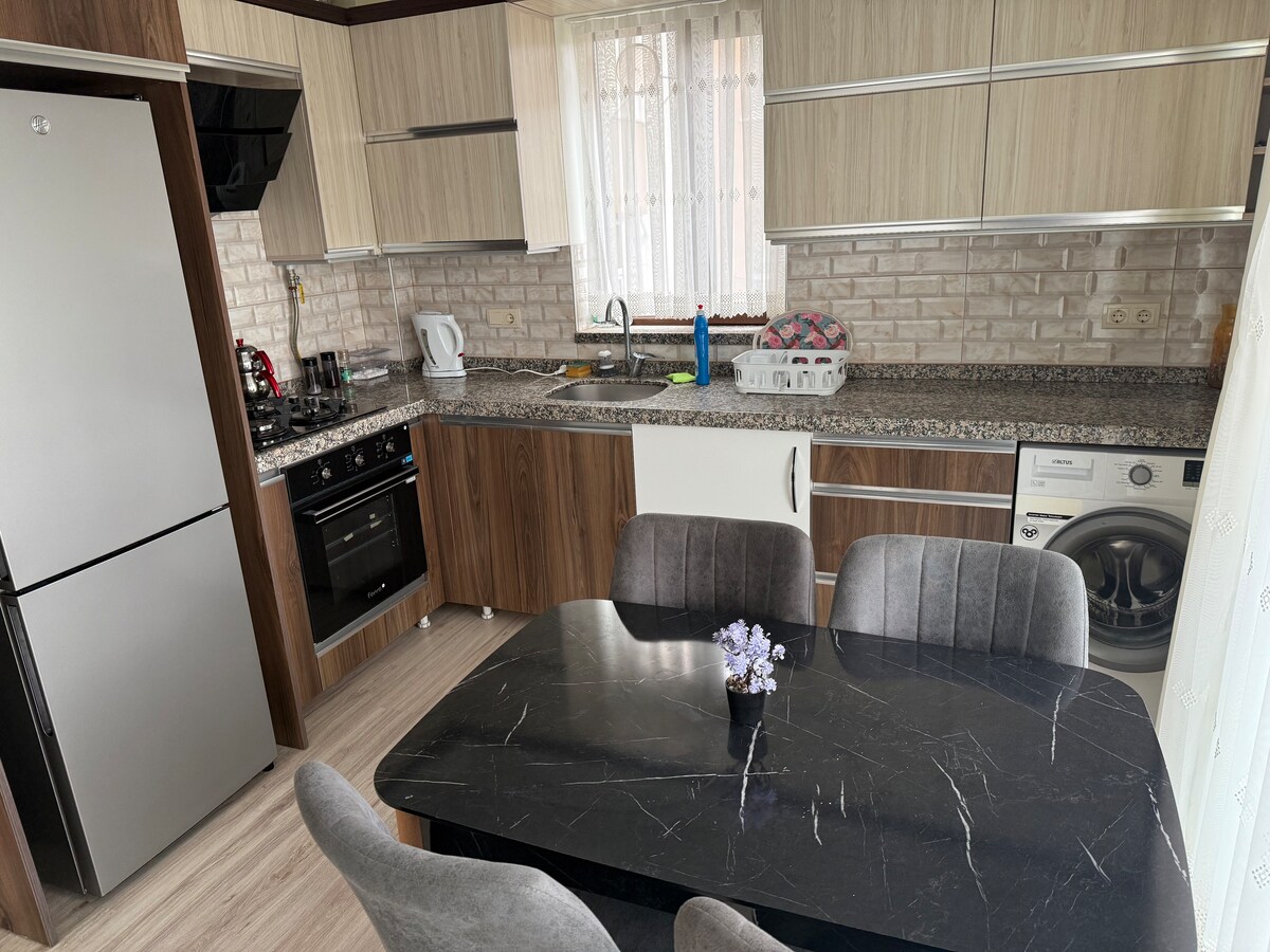 2+1 lakásunk csendes és békés helyen található, mindössze 2 perc sétára a strandtól. Ideális gyermekes családoknak és hosszabb távú foglalásoknak. Az otthon melegséget kínál kényelmes ágyakkal, nagy nappalival és egyszerű dekorációval. Alapvető konyhai felszerelések állnak rendelkezésre. Nincs parkolási probléma. A lakásunkat minden foglalás előtt professzionálisan kitakarítjuk.