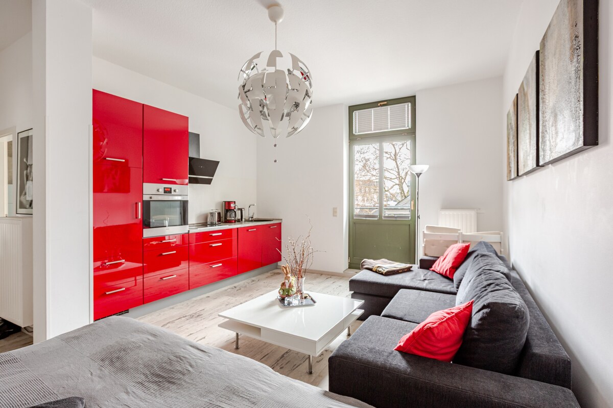 Wie wär's mit einem über 40qm großen Einzimmerapartment in einem historischen Altbau zentral zwischen Augustusplatz, Johannesplatz und Uniklinikum ganz für euch allein? Egal, ob zum Marktplatz, der Kneipenmeile an der Karli oder dem botanischen Garten, alles erreicht ihr zu Fuß in unter 15 Minuten – ihr könnt also perfekt die Stadt erkunden und übernachtet trotzdem in einer ruhigen Gegend. Bei schlechtem Wetter könnt ihr beim Smart-TV-Schauen entspannen oder in der Küche etwas leckeres kochen :)