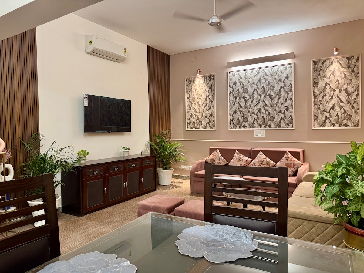 Step into a tastefully curated Luxury 2BHK villa tucked away in one of South Delhi’s most premium neighbourhoods. Recently renovated in June 2025, this serene garden villa blends timeless charm with modern sophistication, offering a tranquil retreat amidst the city’s vibrant pulse. Designed with elegant interiors, ambient lighting, and calming hues, the space exudes freshness and warmth — making it the perfect setting for weekend escapes, business travel, family stays, or extended city sojourns.