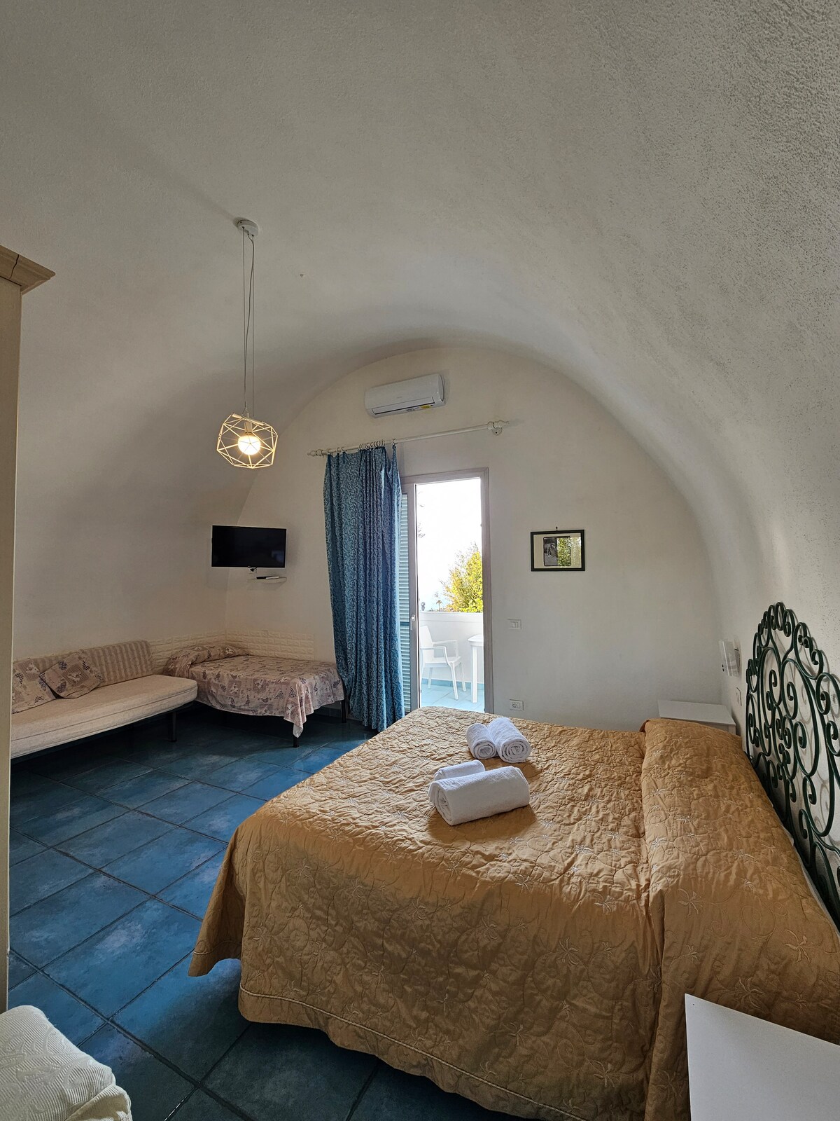 Graziosa Casa posta all'ultimo piano di un palazzo nel cuore del centro storico del Comune di Forio d' Ischia. A pochi passi dalla spiaggia, dalla suggestiva Chiesa del Soccorso, dall'animato centro pedonale e dal porto di Forio, ricco di locali e ristoranti. Due camere da letto, un bagno con doccia e terrazzino, una cucina con angolo pranzo, un salone con Smart TV e divano letto, tre terrazzini con vista sul mare, aria condizionata e riscaldamento, Wi-Fi libero in tutta la casa.