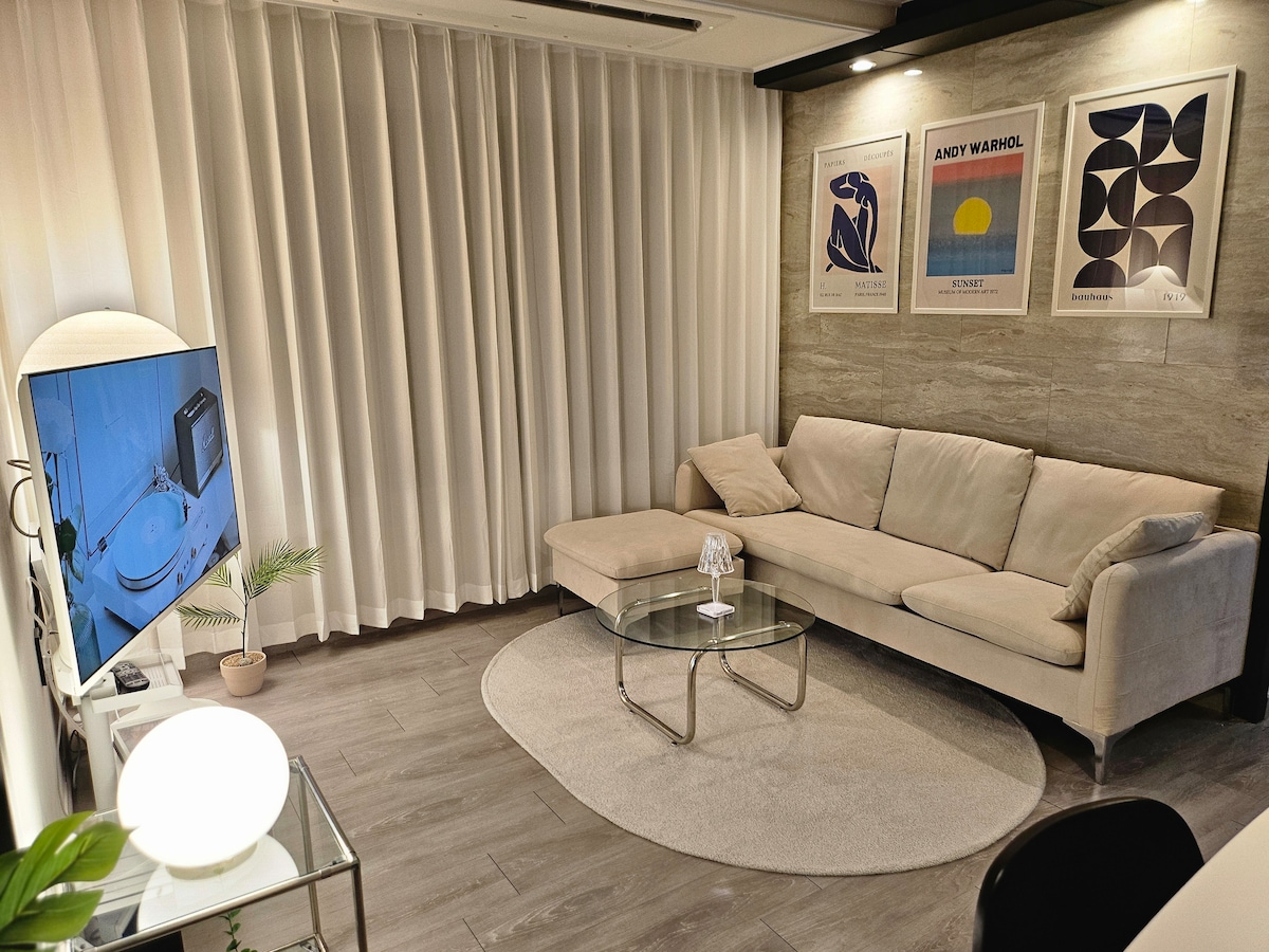 [3 szoba + 2 fürdőszoba] Tágas nappali és szoba, 5 perc a Sangsu állomástól, közel a Hongdae-hoz