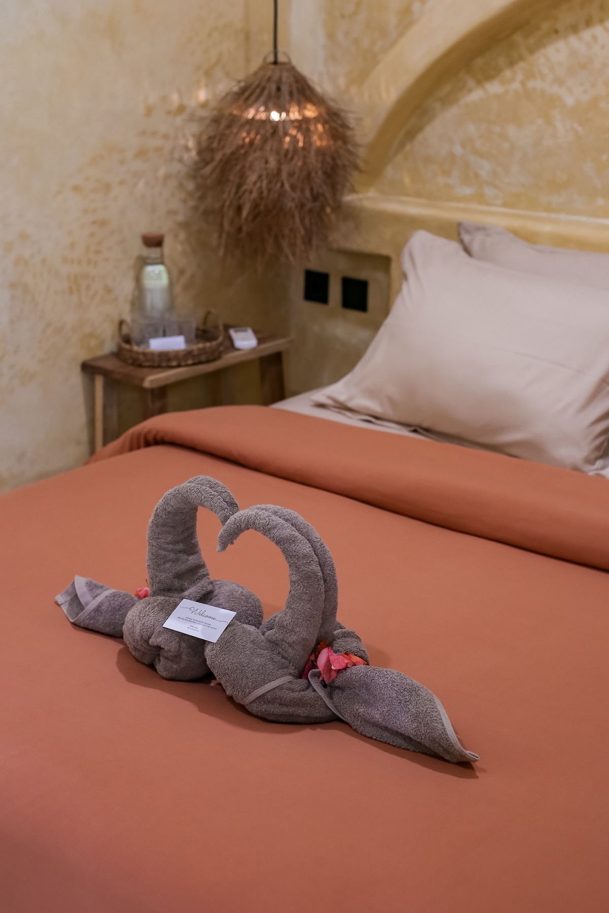 Our boho-style cottages each feature a private indoor bathroom with a walk-in shower, a king-size bed, and a private garden for ultimate relaxation. Enjoy the large pool with bean bags and sun beds, and visit our bar for breakfast (included) or a refreshing drink. The décor is light, cozy, and bohemian. The family room has 2 interconnecting rooms for privacy, 1 bathroom, and a patio where you can chill. Perfect for families seeking both togetherness and personal space.