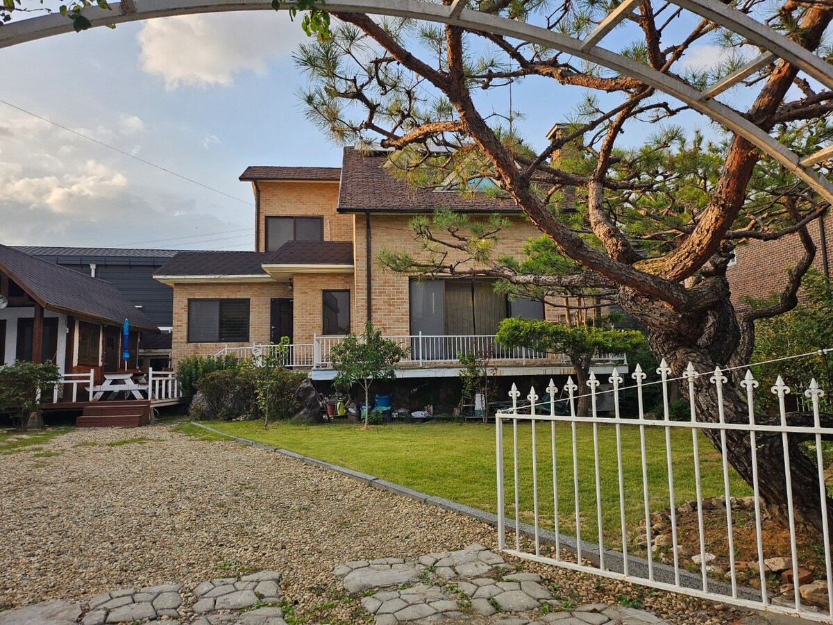 Szia Ő a házigazdád, Bunok. A „Four Seasons” egy olyan ház, amely magában foglalja az általam épített megerősítés négy évszakát. Tágas gyep, egy szép fa és egy újonnan berendezett belső tér üdvözöl. 340 pyeong földjén díszítve Szánj egy legfeljebb 12 fős privát időt egy villás magánházban. Családokat, ismerősöket és műhelyfoglalkozásokat is szívesen látunk. Autóval körülbelül 10 percre található a Choji hídtól, és használhatsz szabadtéri grillezőt, kertet, intex medencét (nyár), Bluetooth mikrofonszobát stb. Élvezd a hintaszékek és napernyők alatti tájat, és élvezd a különböző módokat, például a grillezést, a tűzrakóhelyet és a könnyű sétát. Túrázás a Gilsangsan-hegyen: 1 óra a csúcsra Természetközeli élményfarm: lovaglás, hegyi motorkerékpár Ganghwa Rouge: Rouge és felvonó Fürdőzés: tengeri leves, Yakam Hot Spring Számos más étkezde és kávézó Háziállatok nem engedélyezettek (100 000 KRW a szabályok megsértése esetén.)