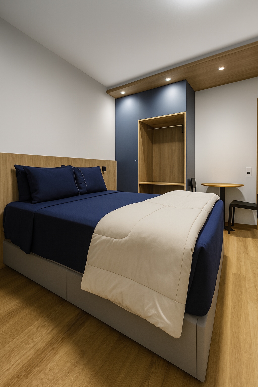 Flat particular com decoração inspirada no charme londrino, localizado dentro de hotel 4 estrelas, oferecendo conforto, praticidade e boa localização em São Paulo. Ambiente completo e funcional, com Wi-Fi rápido, ar-condicionado, TV Smart, frigobar e cápsulas de café. O prédio dispõe de piscina, academia e estacionamento, conforme regras internas. Ideal para lazer ou trabalho, com gestão e suporte da F&M Administradora de Flats durante a estadia.