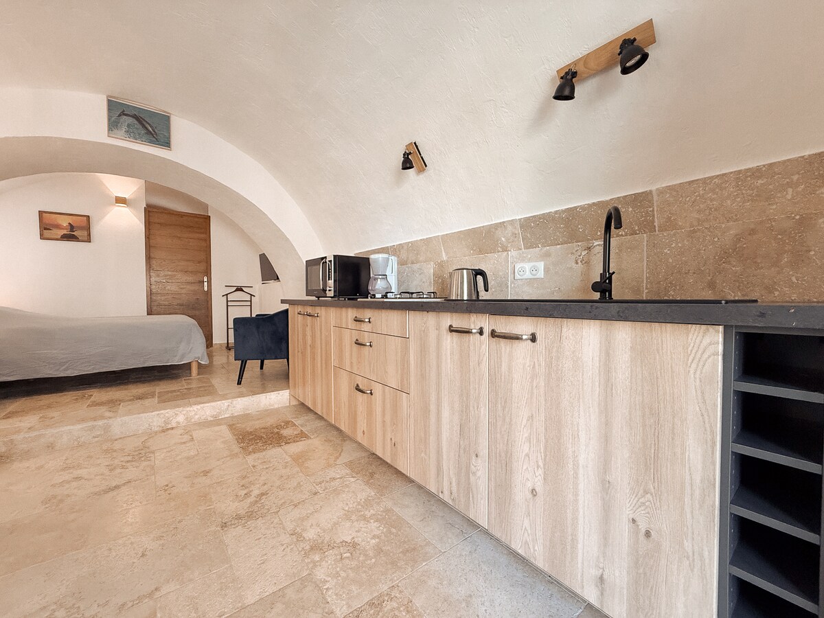 A műemléki Nonza falu szívében található, 16. századi boltíves stúdiót teljesen felújították, hogy ötvözze az autentikus hangulatot a modern kényelemmel. A szálláshelyen kétszemélyes ágy, teljesen felszerelt konyha, étkező, tiszta fürdőszoba és saját kert található, amelyből lenyűgöző kilátás nyílik a tengerre és a harangtoronyra. Hűvös és békés, tökéletes hely a kikapcsolódásra a Cap Corse kivételes természeti környezetében.