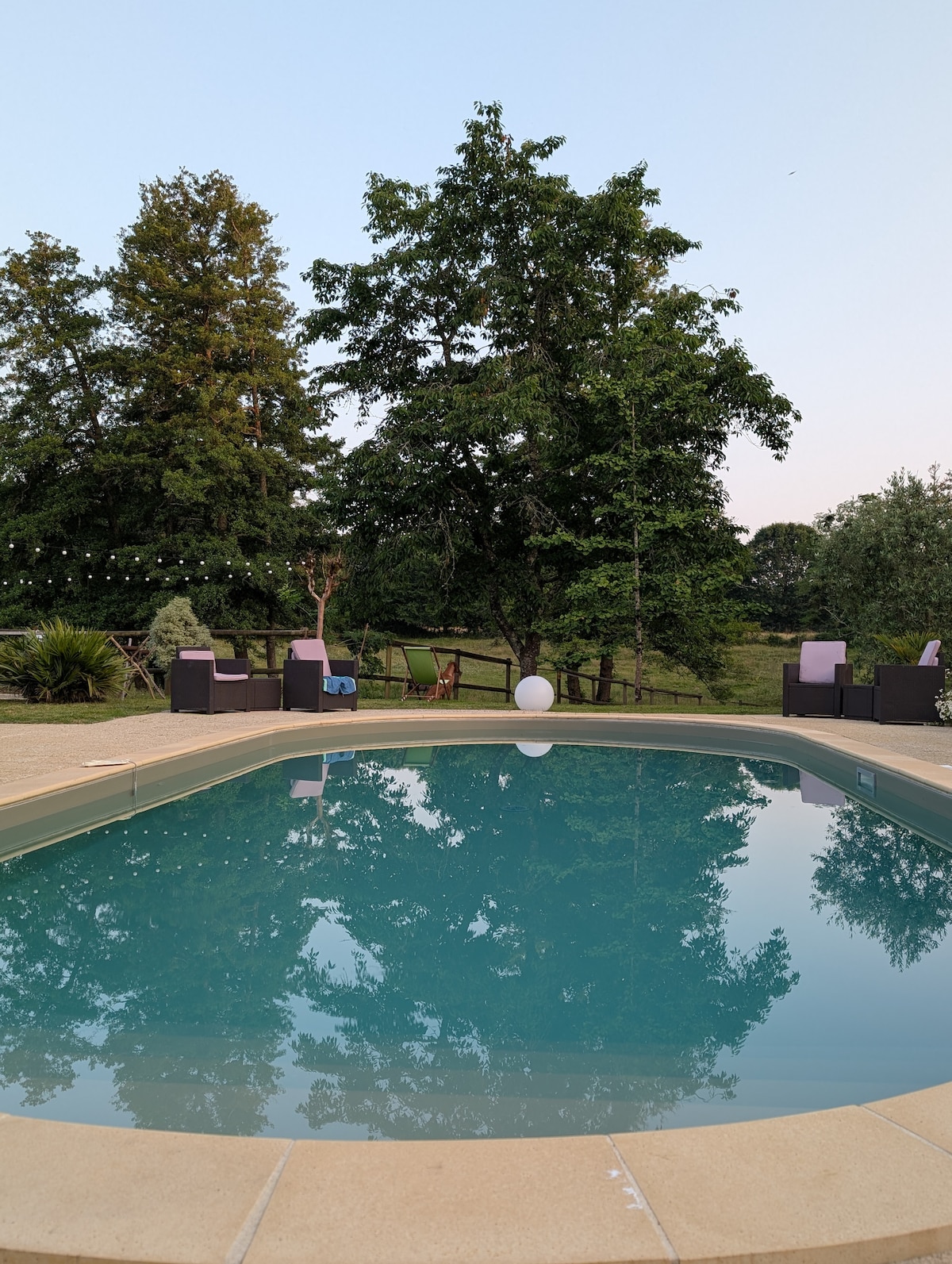Luxus francia ház, a szép Aubeterre-i piaci város mellett. Nemrégiben magas színvonalon felújított, nagy, nyitott terű konyhával/nappalival, 1 db kétszemélyes ágyas és 2 db kétágyas hálószobával (mindegyik saját zuhanyzóval). 10 x 5 m-es FŰTÖTT (májusban és szeptemberben külön kérésre, felár ellenében) medence, kilátással a nyílt mezőkre és a nagy teraszra. Sétáljon be a helyi faluba, hogy a helyi boltban beszerezze a reggeli friss kenyeret és croissant-ot stb., vagy élvezze a távolabbi folyókat, kastélyt és szőlőhegyeket.