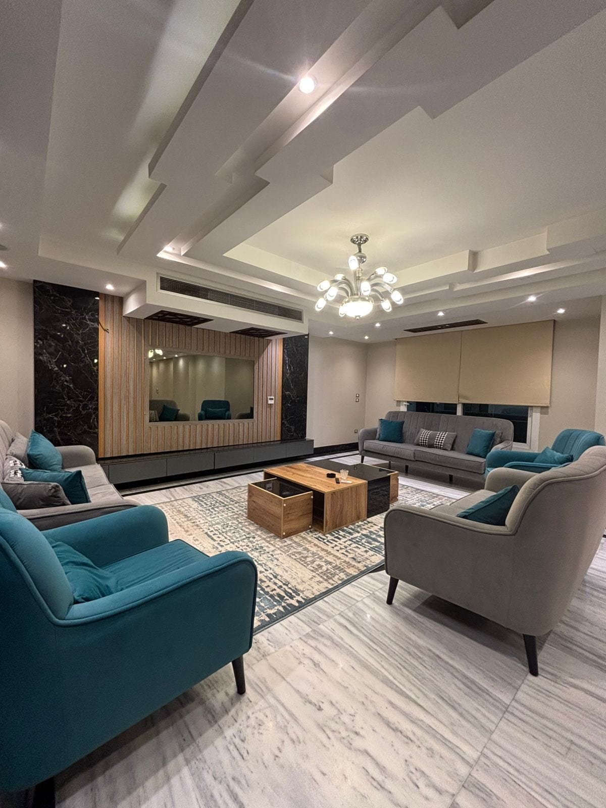 � وصف الشقة: 🛋️ غرفة المعيشة تجربة فندقية فاخرة بلمسة منزلية راقية! استمتع بأجواء راقية تجمع بين الفخامة والراحة، حيث تتميز غرفة المعيشة بتصميم عصري أنيق ومساحة واسعة بعناية. تضم منطقة جلوس مريحة مثالية للاسترخاء، وجهاز PS4 للترفيه. ولعشّاق المشاهدة، ستستمتع بـ تلفزيون OLED سينمائي فاخر مقاس 75 بوصة مع جودة صورة مذهلة، إلى جانب إنترنت فائق السرعة لتجربة ترفيه متكاملة تناسب الإقامات القصيرة والطويلة 🍸 المطبخ: مفتوح على غرفة المعيشة بأسلوب أنيق، ومزوّد بـ كراسي بار فاخرة تضيف لمسة جمالية راقية.