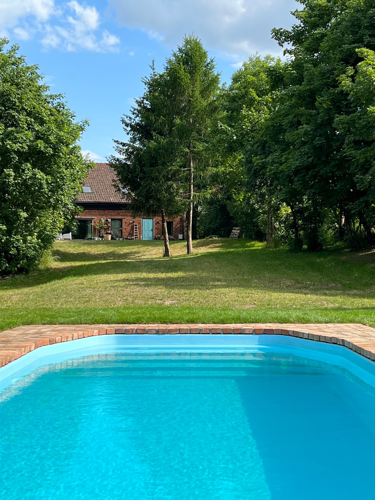 Kis faházam (30m2) a vidék közepén különösen alkalmas gyermekes családok számára (5 éves kortól - a felső emeletre vezető kissé meredek lépcső miatt). Teljesen felszerelt 55 hüvelykes TV-vel, hűtőszekrénnyel, 2 főzőlappal, grill funkcióval rendelkező mikrohullámú sütővel és rengeteg edénnyel. A kerékpárok, a szauna és a pezsgőfürdő használatáért kis szórakoztató adományt várok. A melléképületben lakom, és segíteni fogok neked. Beszélek lengyelül és németül