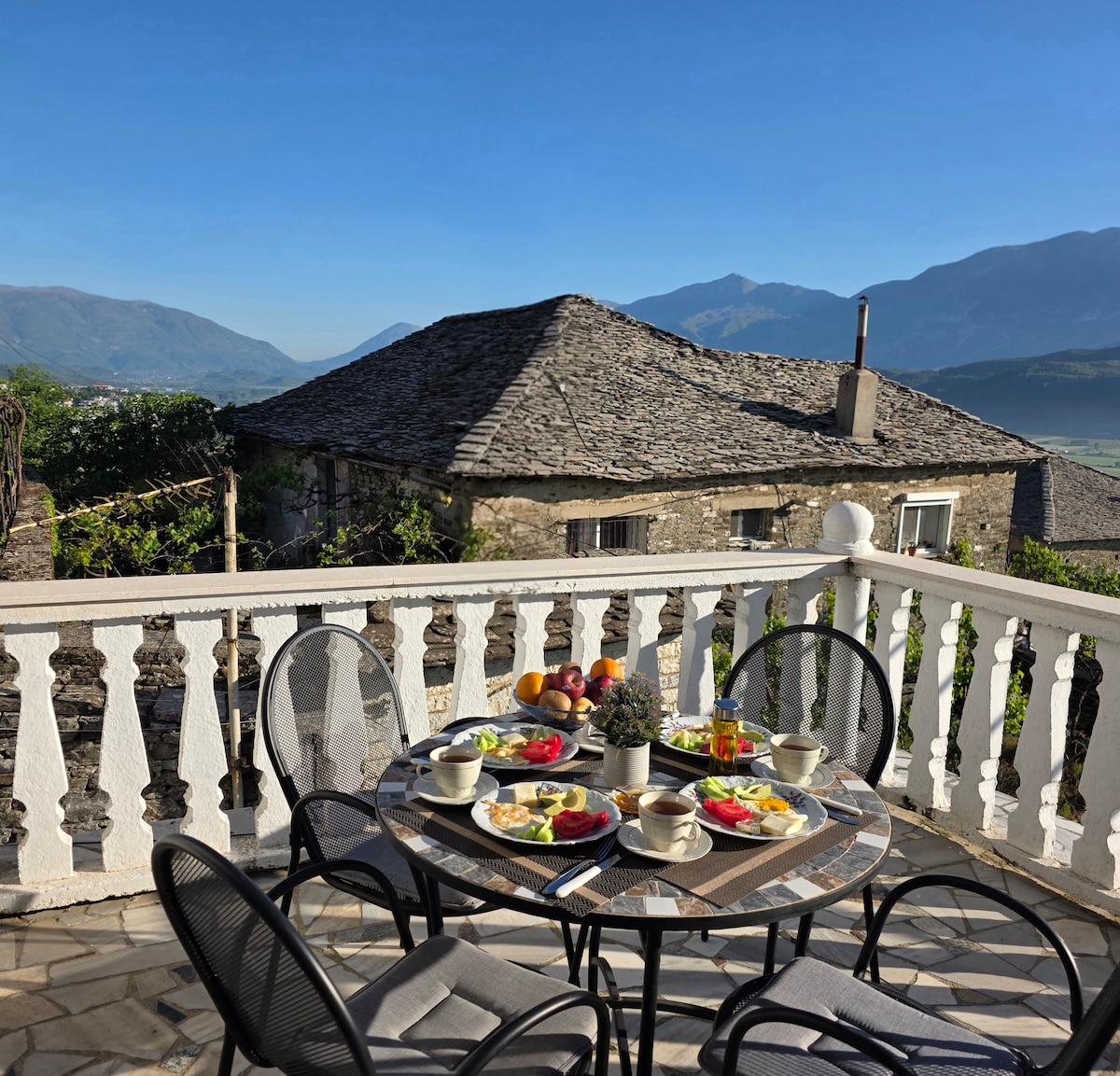 A Kalaja e Gjirokastrës épületétől mindössze 4 perc sétára található, bájos kőház kényelmes szállást kínál 2 hálószobával, 2 fürdőszobával, teljesen felszerelt konyhával és gyönyörű hegyi kilátást nyújtó, saját erkéllyel. Ideális családok vagy kis csoportok számára, és legfeljebb 6 vendég elszállásolására alkalmas. Csendes környéken található, sétatávolságra minden főbb látnivalótól. A házat közel 300 évvel ezelőtt építették, de 2025-ben felújították.