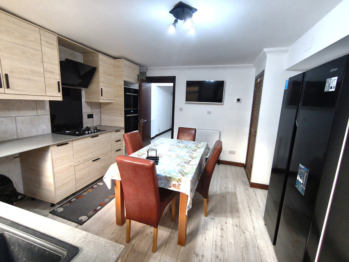 Kivételesen nagy, tágas, 4 hálószobás lakás. Közel a városközponthoz, a Pacific Quayhez (BBC és STV) és a West Endhez, könnyen bejárhatod Glasgow-t metróval. 2 szoba Super-Kingsize ággyal, 2 king méretű ággyal, 3 fürdőszoba (1 En-Suite) és zuhanyzószoba (En-Suite). Minden szobában van Android-tévé Wi-Fi-vel, a társalgóban pedig egy retró, bluetoothos Hi-Fi található. Modern konyha felszerelt készülékekkel és mosógéppel. Tárolj és vigyél magaddal ételt az utca túloldalán.