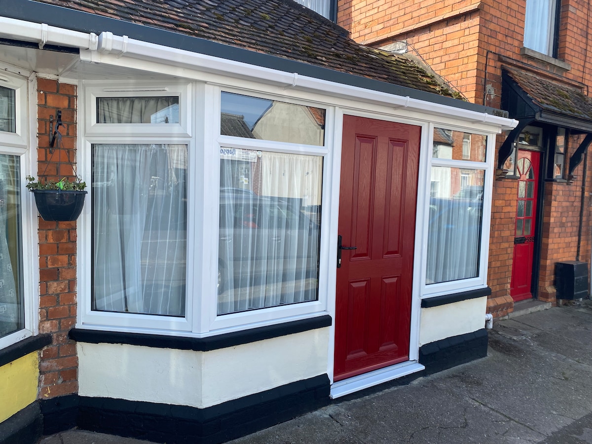 Welcome to 'The Light Space' A garden house with own private entrance, garden and off road parking. Comfortable, clean and spacious. Stroll 4/5 mins to central town location. Upstairs: 1 large double bed room and 1 small double bed on a mezzanine next to the bathroom. See layout photo Downstairs: A large spacious, open plan living area with kitchen, dining table, sofa, chair and digital TV, that looks out onto a patio with garden furniture.
