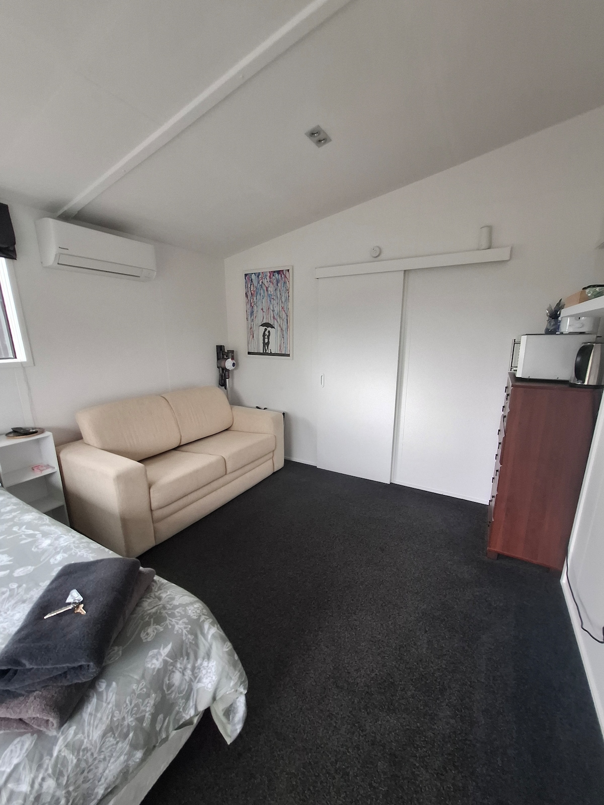 Loft @ Nine is a B&B styled studio room above our garage. Located in a quiet, residential area of Pukekohe & 3 mins drive to town, the room is perfect for a couple or single occupant. Please note the angled wall. The self-contained, air-conditioned studio comes with free wifi, private access & onsite parking. Equipped with 1 queen bed, 1 bathroom, a sofa & TV. Milk & light snacks will be provided in the small kitchenette, which includes a mini fridge, toaster, microwave, jug, tea & coffee.