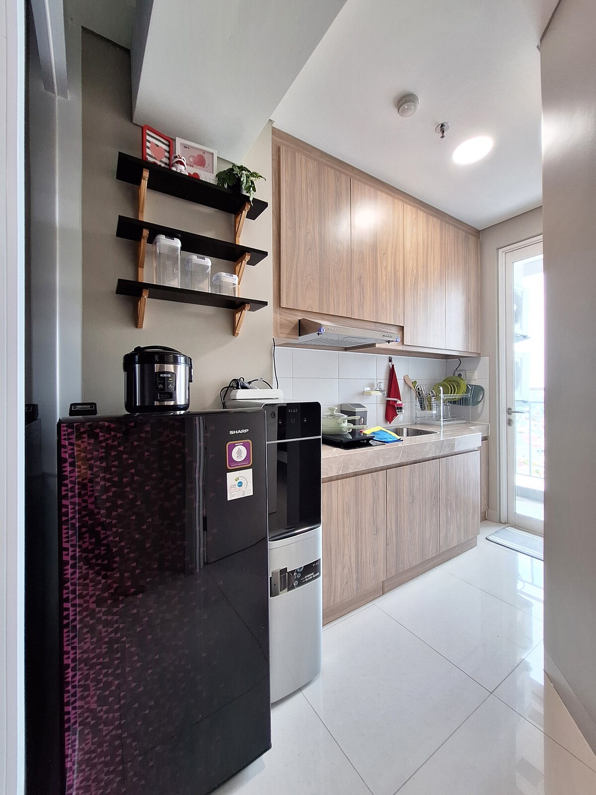 1BR Minimalis Vintage Design Apartemen - Easy transport - Near Chinatown and Old Town Unit Facility: AC Smart TV Modem Wifi Sofa bed Extendable Table Shoes Rack -- Refrigerator Dispenser Electic Stove Cooker Hook Cooking and Eating Equipments -- Bed Set Wardrobe Working Table -- Water Heater Exhaust Fan Cleaning Equipment Public Facility: Lobby Swimming pool Fitness Center Community Area Outdoor Parking Area