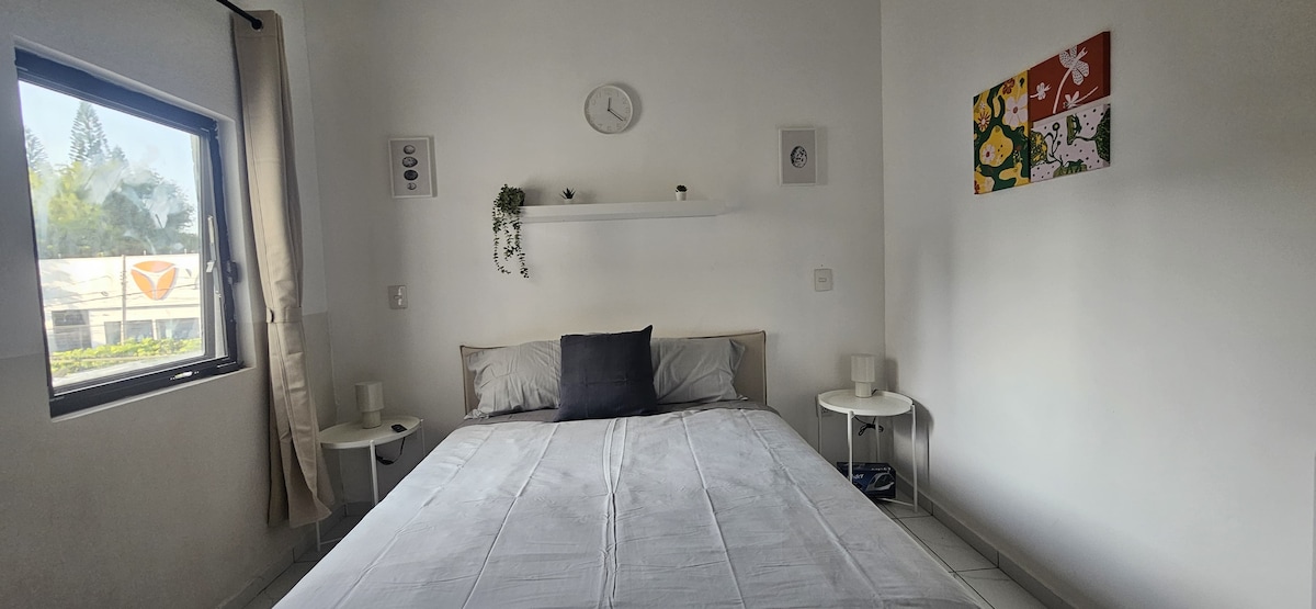Modern és exkluzív 🌇 apartman egy rövid sétára a konzulátustól és La Minervától. Akár 5 fő elszállásolására alkalmas, 2 egyszemélyes ággyal, 1 queen méretű ággyal, 1 kanapéággyal, felszerelt konyhával, nappalival, étkezővel, gardróbszobával, erkélyrel, 2 teljes fürdőszobával és mosókonyhával. Biztonságos bejárat az előcsarnokkal és 1 privát parkolóhellyel. Élvezd az edzőtermet, a tetőkertet, a játszószobát és sok minden mást. Közel a terekhez, éttermekhez, egyetemekhez, kórházakhoz, pénzügyi negyedhez, cipőgalériákhoz, konzulátushoz és a Glorieta Minervához.