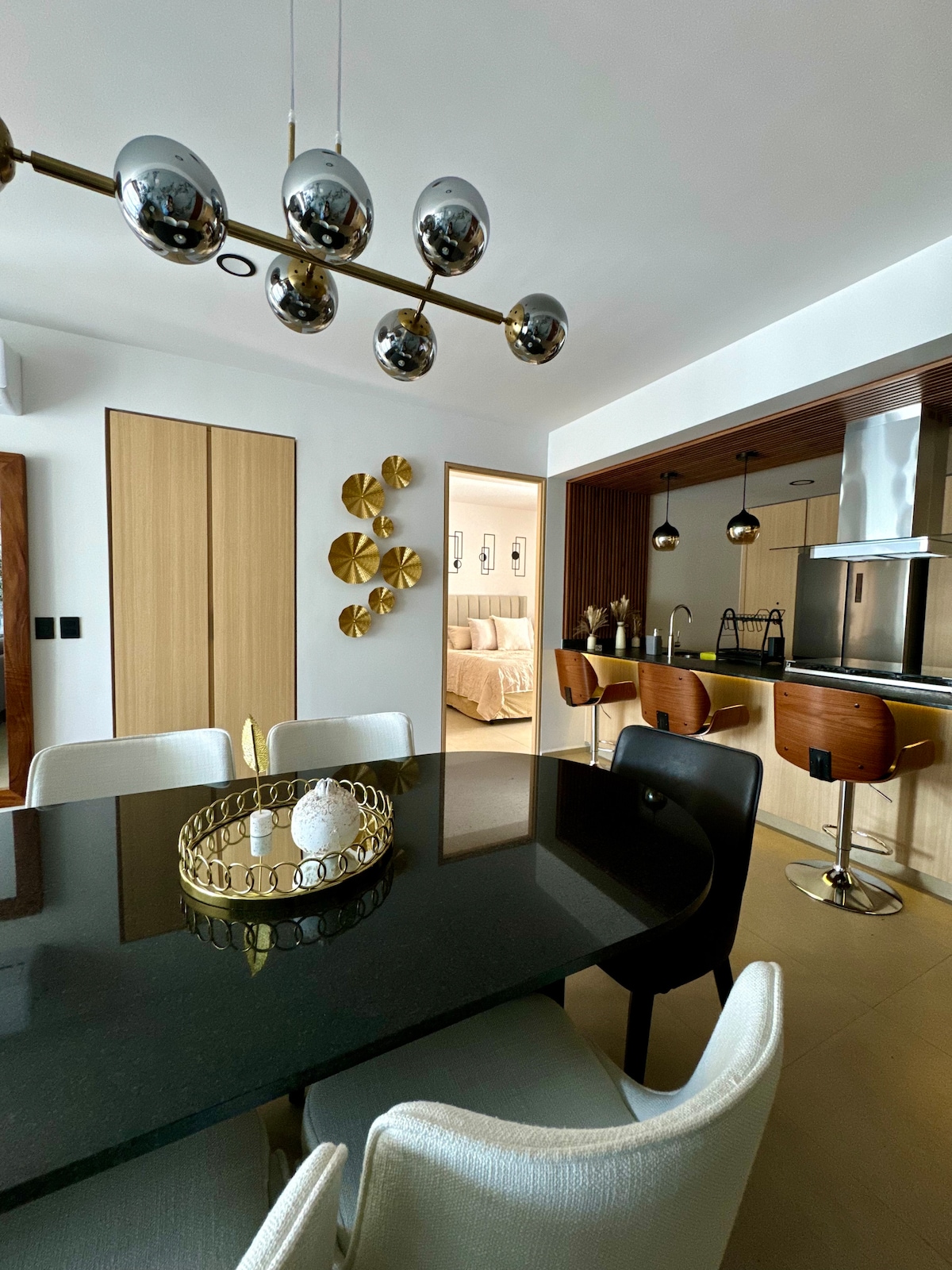 Fényűző lakás Guadalajarában, amelyet az FNisino irodája díszített, és egyedi bútorokkal helyi kézművesek készítették. Szállj meg Providencia egyik legelegánsabb és legújabb épületében, közel a pénzügyi negyedhez, a Bosque Colomoshoz, a Punto Sao Paulo-hoz, és mindössze 10 percre az Andarestól. Kivételesen kényelmes hely, amely minden kényelmi szolgáltatással rendelkezik, és hihetetlen élményt nyújt. Nonstop biztonsági szolgálat, úszómedence, edzőterem, közös munkaterület és saját parkoló.