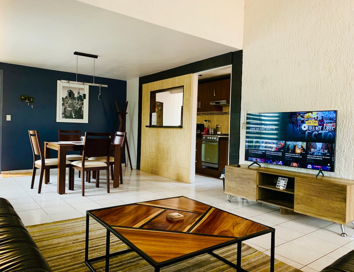Kényelmes és modern a földszinten, kiváló elhelyezkedéssel a Plaza del Sol és az Expo Guadalajara közelében. Csak néhány háztömbnyire a López Mateos és a Mariano Otero sugárutaktól. Nagyon kényelmes, és rengeteg stílussal, bútorokkal, kiegészítőkkel és evőeszközökkel vannak berendezve, amelyeket kifejezetten azért választottak ki, hogy jól érezd magad nálunk, teakonyhával, nem pedig tűzhellyel, de ha kérsz, indukciós grillt tudunk biztosítani. Légkondicionálóval rendelkezik, hogy friss és kellemes légkört biztosítson